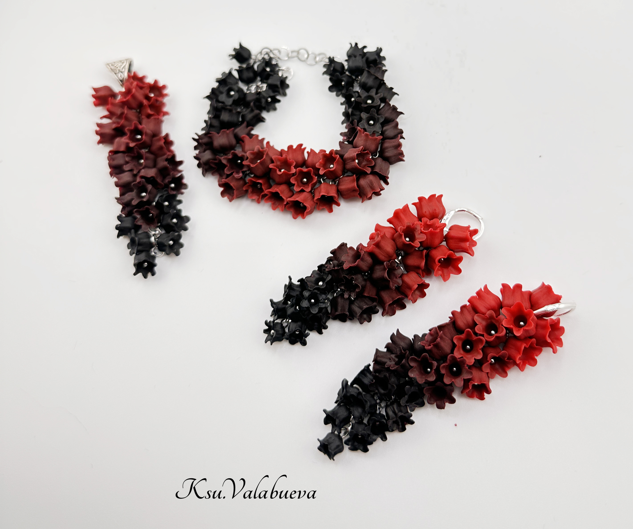 Сегодня покажу вам комплект украшений из полимерной глины в черно-красном цвете.
