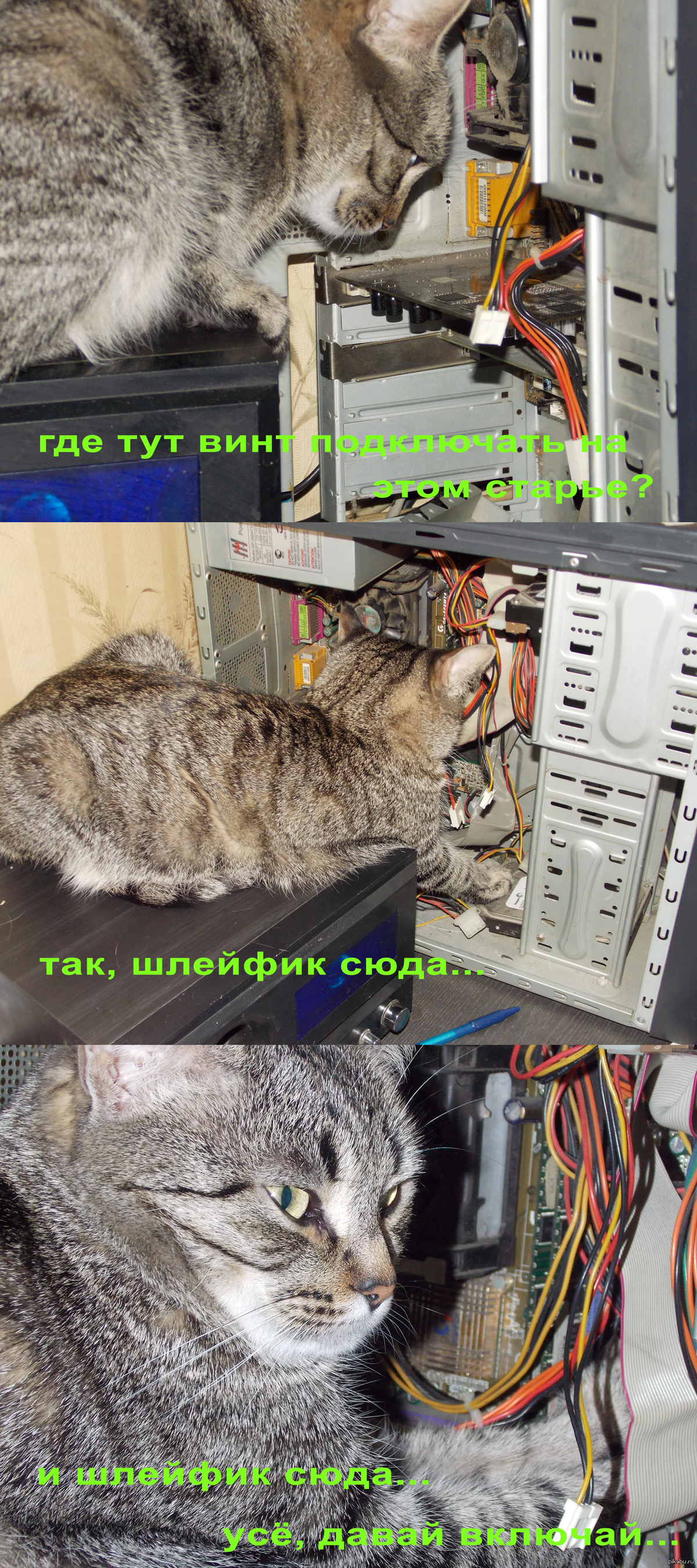 42 Mancubus Компьютерная кошка, это вам не мышка )) 11 лет назад кошка показывает, как подключать жесткий диск )) [моё] Кот Древний хлам Жесткий диск Длиннопост