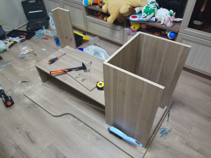 Начинаем собирать, отправив жену с дочерью к тёще, и раскидав игрушки что бы не мешались:)