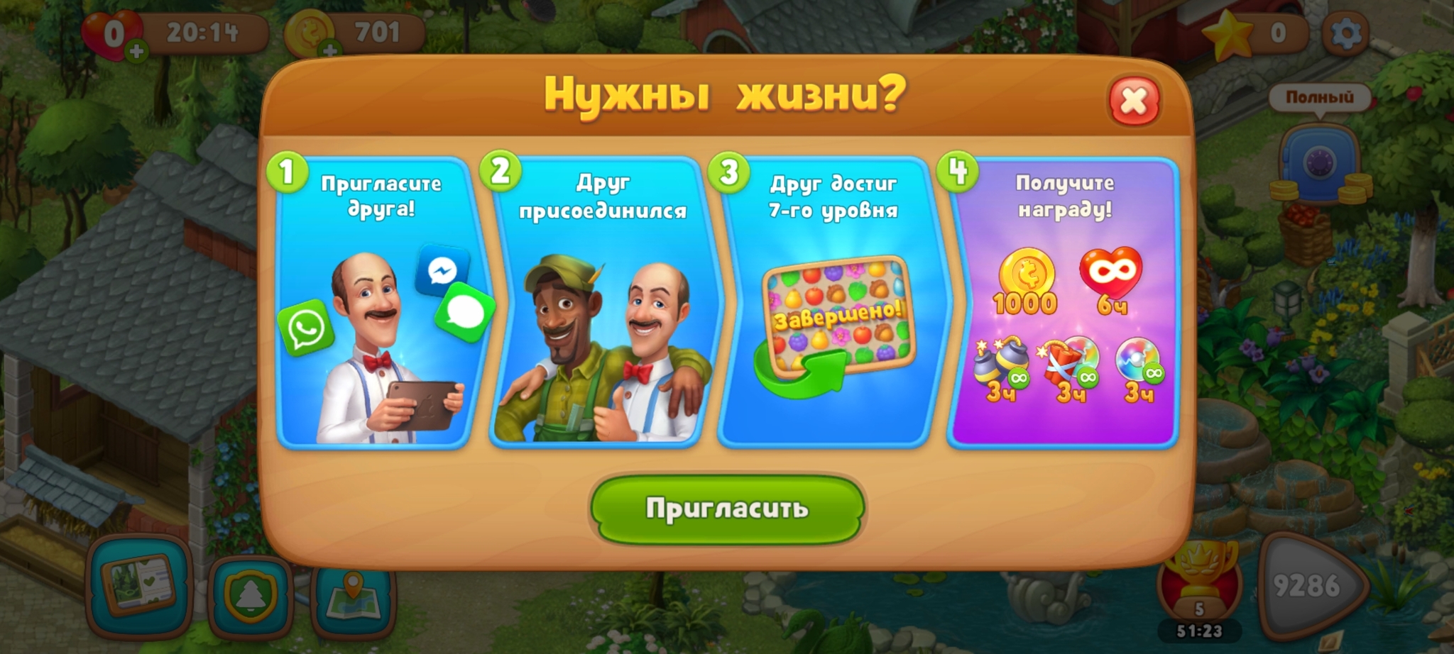 Ребята, добрый день! Я понимаю, что здесь все кто со своими проблемами, кто с радостью, а я вот с такой глупостью, но все же попробую. Есть такая игра, которую я пару лет назад скачала на телефон, и до сих пор в нее играю, собираю шарики, а потом строю сад. И когда заканчиваются жизни, нужно либо их купить, либо ждать. А так как сейчас карантин, играть хочется, а восстановления жизни ждать долго, а покупать не хочется, попрошу, кому не сложно... можно кому-то из вас скинуть ссылку на приглашение в игру, вы ее по моей ссылке установите, дойдете всего лишь до 8 уровня, а мне придут за это прекрасные бонусы и я буду играть дальше)))) у меня в окружении не осталось тех, кто эту игру по моей просьбе не установил и эти манипуляции для меня не сделал. Если не затруднит, пикабу!!! Спасибо! Вот подтверждение того, что это не какой-то развод, а моя любимая игра))) да, мне 35 лет , девочка. Это неважно, конечно, просто чтобы было понятно, что мне не 10.