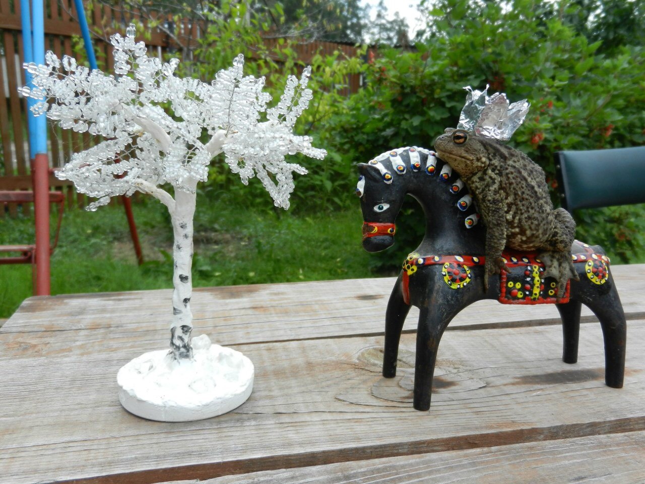 8 Zaponka81 6 лет назад Кому принца на черном коне? Только поцелуем расколдовать надобно Жабу поймала я, подсвечник в виде лошади мой, фото мое) [моё] Принц Жаба