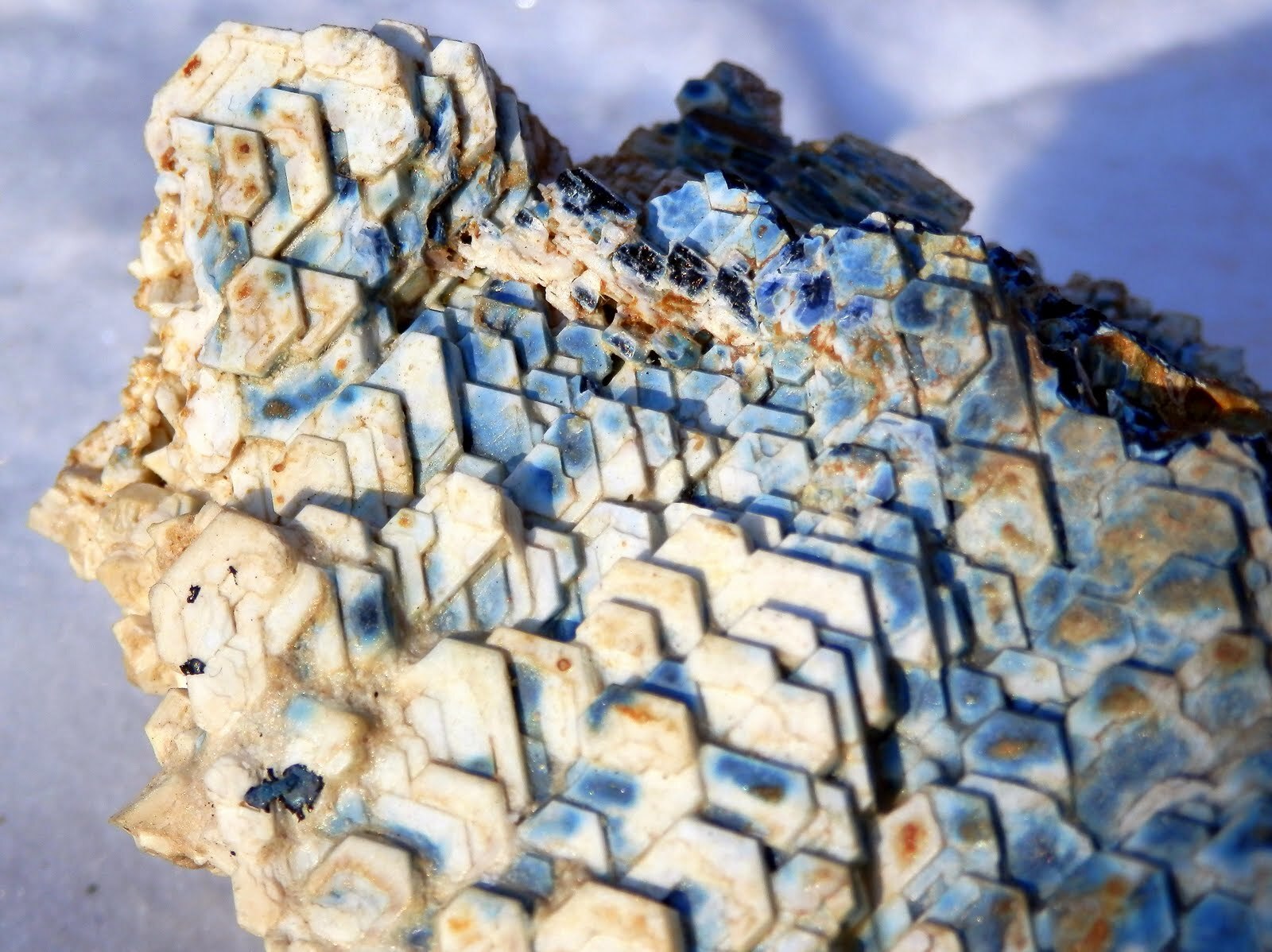 Белая шпинель на синем корунде.
