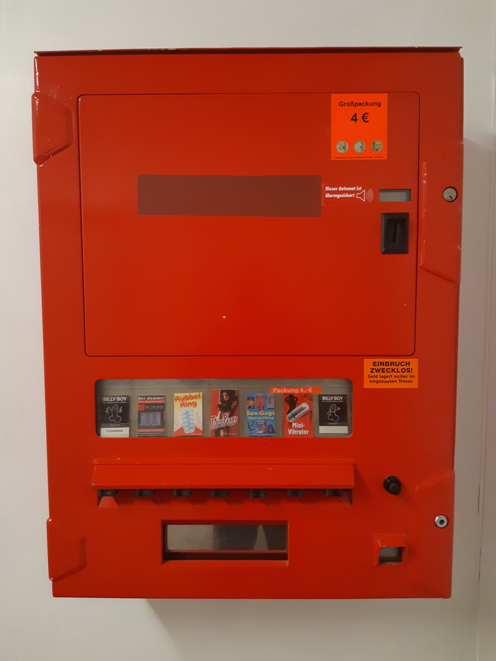 17 Небезопасный контент (18+) Авторизуйтесь или зарегистрируйтесь для просмотра Jolopukki Кондоматы 5 лет назад В Германии почти на каждой заправке в мужских туалетах установлены вот такие аппараты по продаже всяких секс-штучек. Остаётся только догадываться, что там продаётся в женских туалетах :) [моё] Презервативы Секс-игрушки Германия Длиннопост Ещё 0