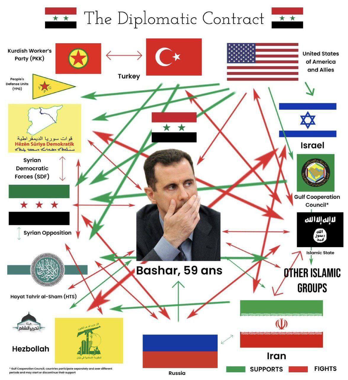 28 ноября вооруженные группировки сирийской оппозиции, включая боевиков «Хайят Тахрир аш-Шам» (организация признана в РФ террористической и запрещена), начали крупное наступление на правительственные войска в западных районах провинции Алеппо. После Алеппо они заняли Хомс, Хаму и подошли к Дамаску — столице Сирии. Кроме того, курдские «Силы демократической Сирии» (СДС) взяли под контроль город Дейр-эз-Зор.