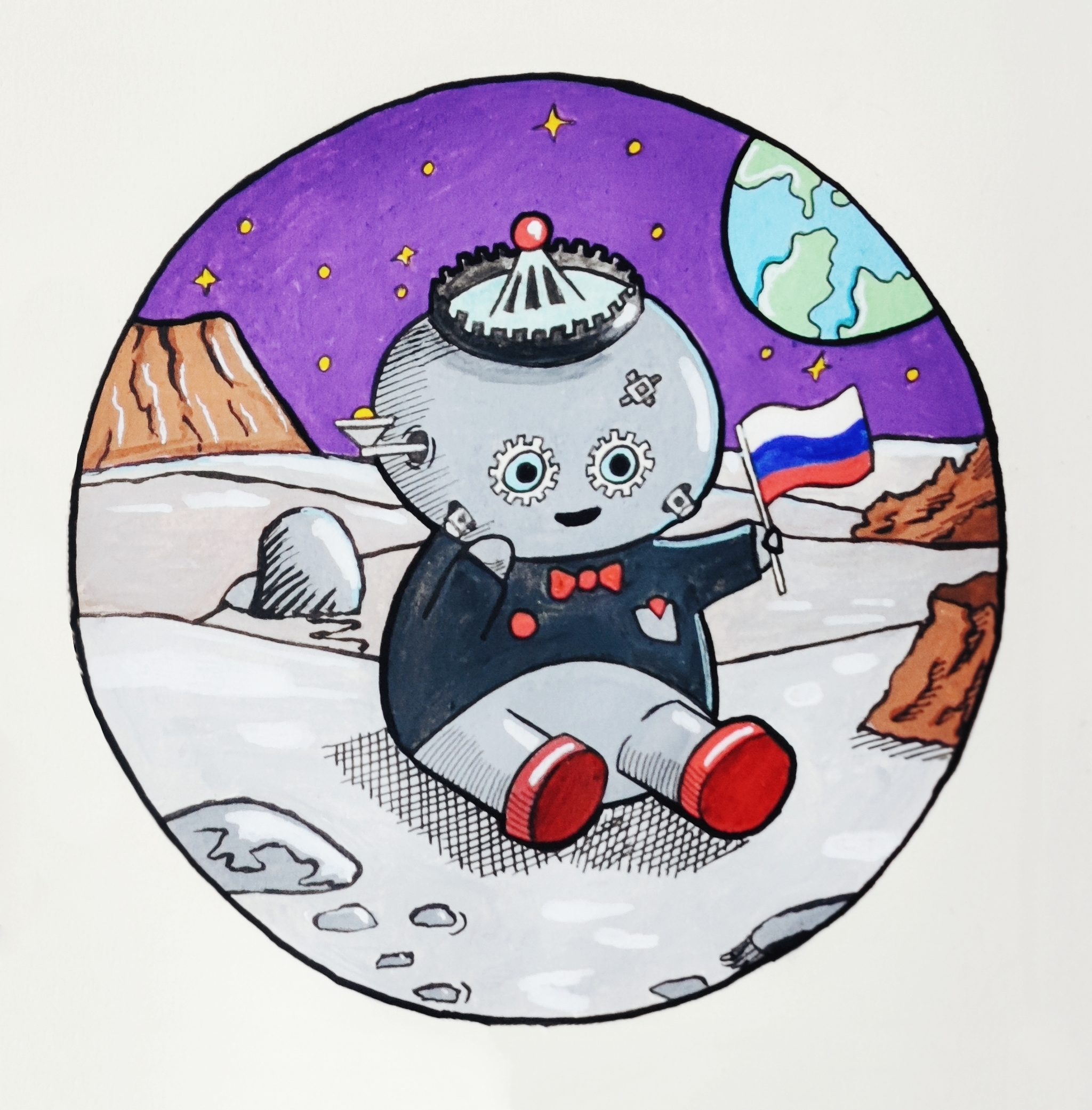 — Берёте карандаши, фломастеры, краски, фотошоп или что-то ещё, а потом рисуете модуль «Причал» в его человекообразном варианте. Мы, вон, уже попробовали, считаем, что получилось весело