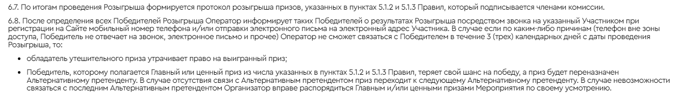 Крайне не сложно догадаться об их гениальной схеме: Вешают приз на человека, которого перед фактом награждения лишают доступа к трансляции розыгрыша и к какой-либо информации касательно конкурса. Т.е приз вешают на мёртвую душу, на человека, который никогда не узнает о том, что он выиграл. Поясняю. Пункт правил 6.8: Организатор оповестит победителя посредством звонка на мобильный телефон, привязанный к аккаунту и/или отправки письма на электронную почту. Само собой, никаких известок от БК "ФОНБЕТ" я не получил, о чём их и известил, читаем этот пункт правил дальше: Если организатор не получает обратную связь от победителя конкурса в течении трёх суток, то обладатель.. лишается приза!
