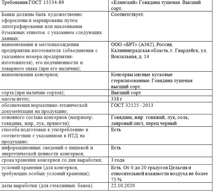 Консервы мясные. ТМ "Елинский". ООО "БРТ"