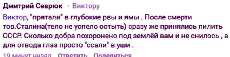 Ну, вы поняли. Еды в СССР не было, потому что какие-то злые силы (инопланетяне, что ли?) её всю прятали. Зарывали в землю. Представляете сколько экскаваторов для этого требовалось, на каком расстоянии от населённых пунктов требовалось копать рвы и ямы, чтобы никто не увидел. Как поступали с экскаваторщиками, рывшими эти ямы, дабы по пьяни не проболтались. Если их в те же ямы зарывать, сколько их надо готовить для непрерывной замены. Полстраны должны на курсах экскаваторщиков заниматься, чтобы закапывать еду и предыдущих экскаваторщиков.