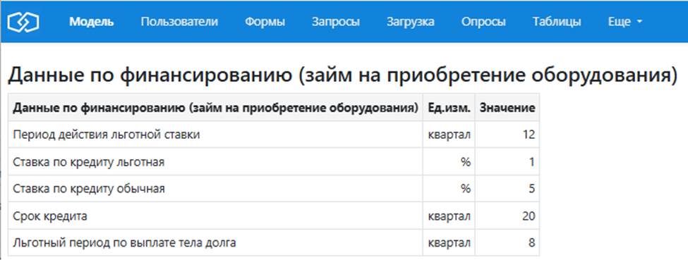 Приведет к такому результату при расчете модели – см. Колонку Значение: