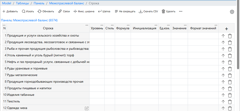 Строки таблиц модели
