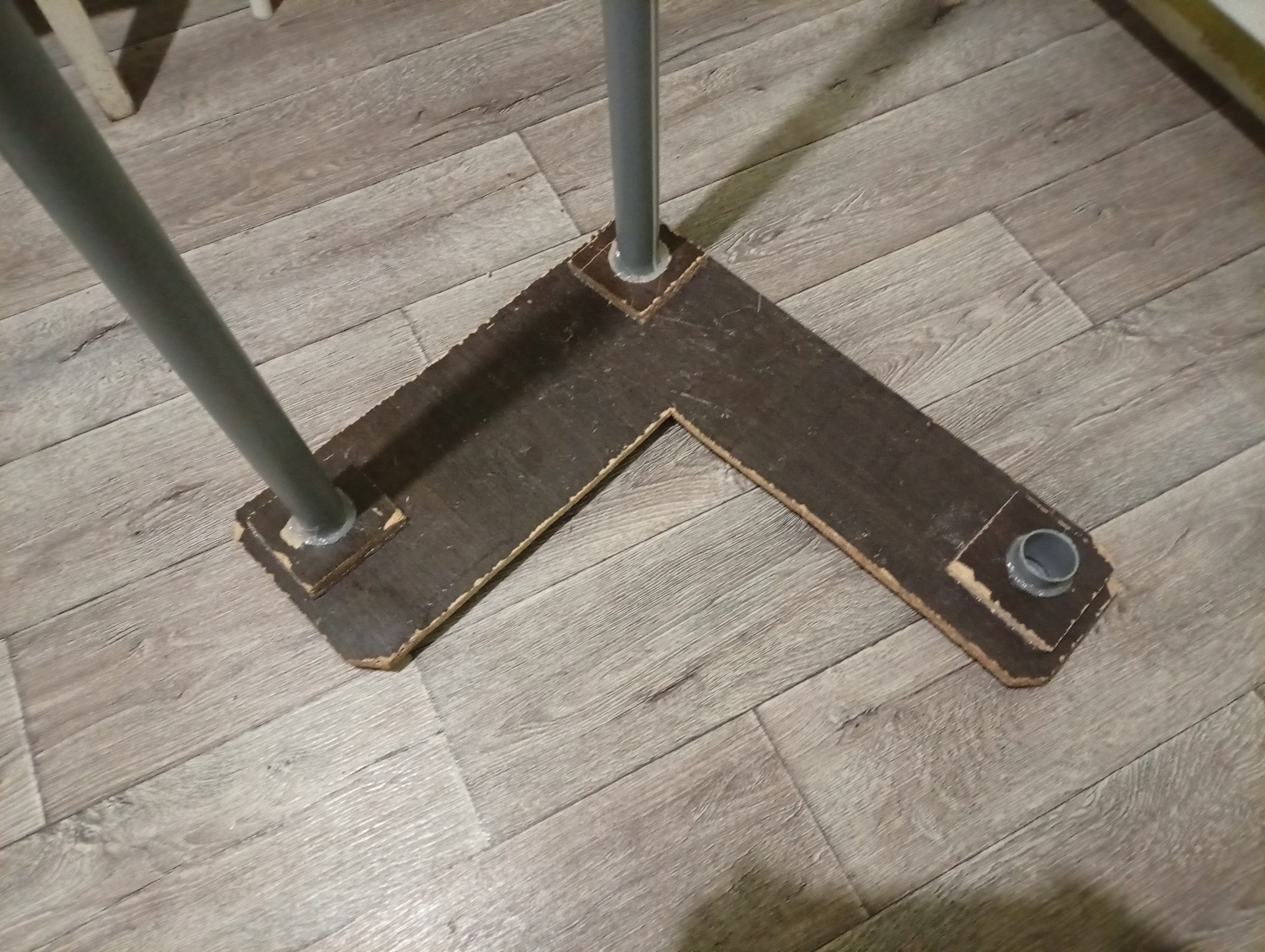 Остатки ДСП, вырезаны углом со сторонами 550 мм и 500 мм. Ширина любая, у меня хватило на 150 мм и 200 мм.