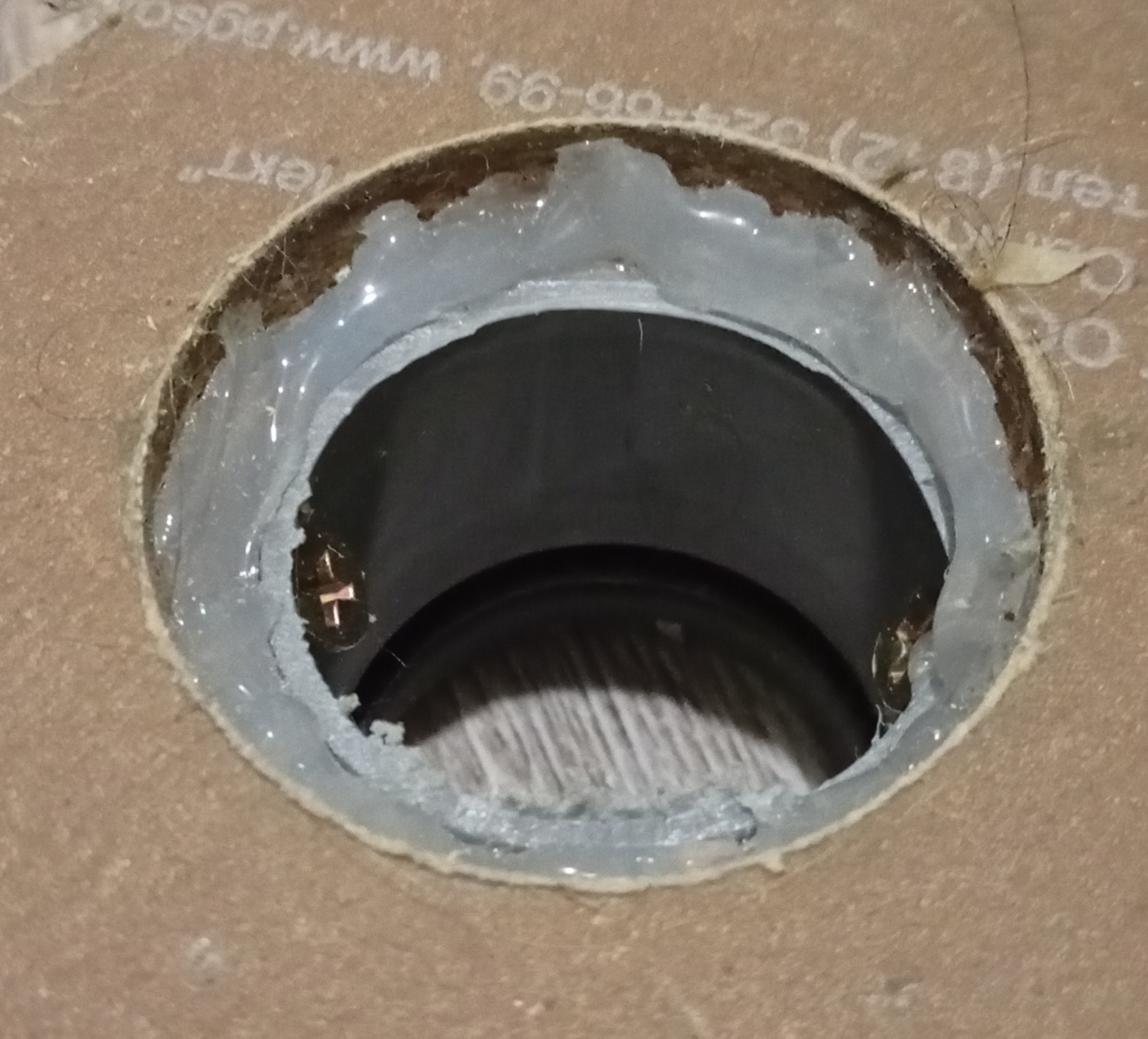 По углам коронкой на 51 просверлены отверстия под отверстия под соединители канализационных труб (обрезаются от обрезков труб или можно взять любые уголки, переходы и т.п.). С резинками!