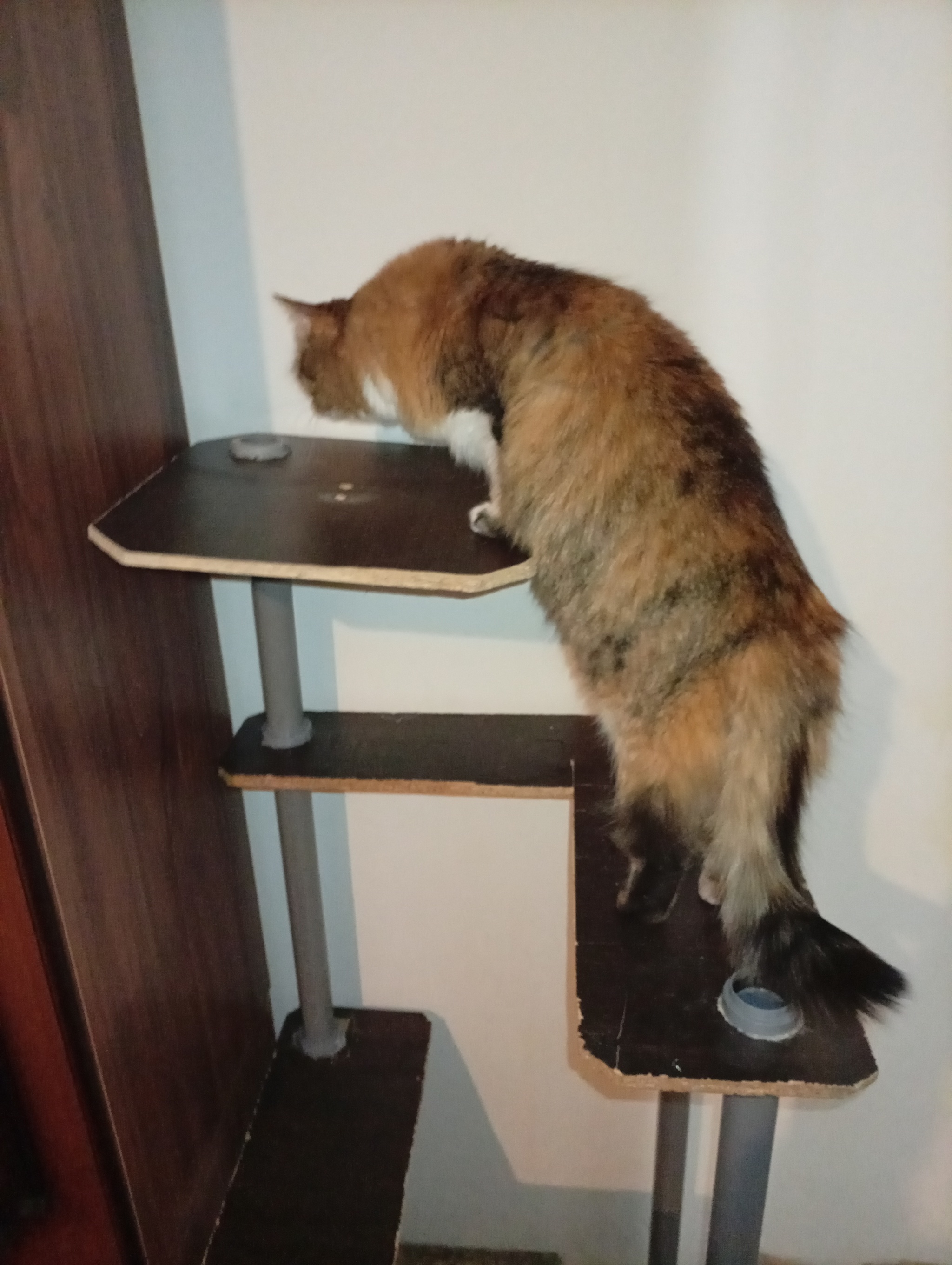 Так же имелись остатки всякого после ремонта. Потому, было принято решение построить кошке стенку для лазания и прочих прыгов.