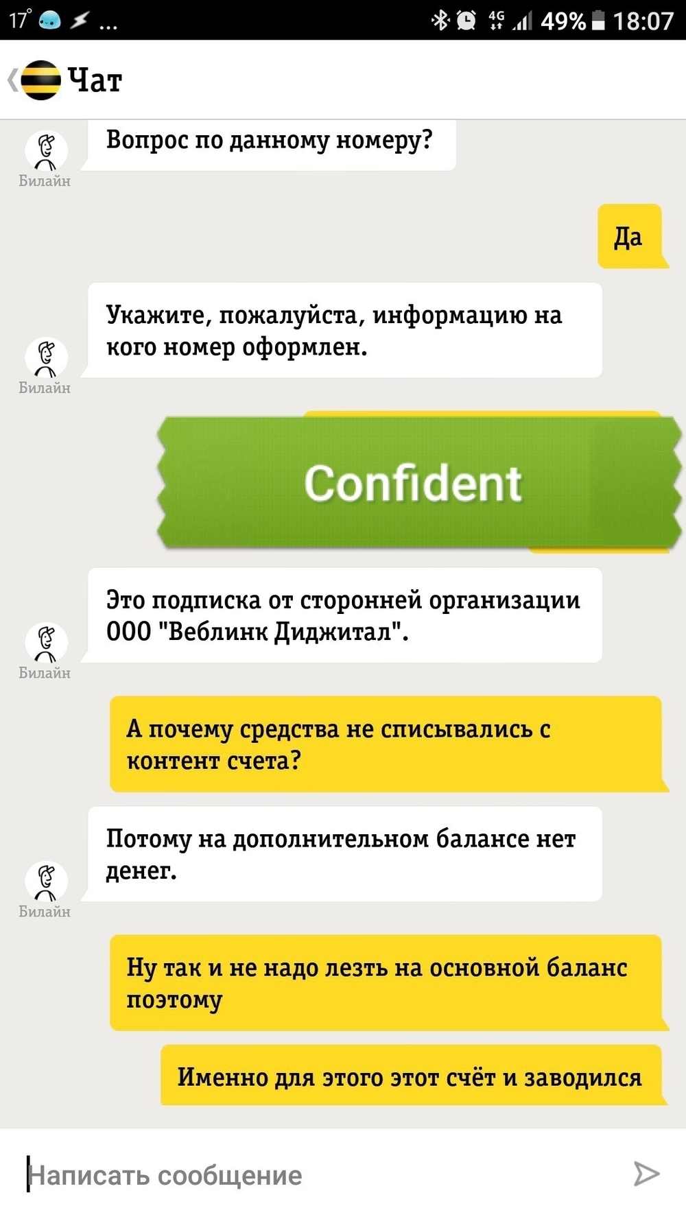 И когда я спрашиваю кого хера списываются деньги если подключен контентный счет, то мне отвечают что с контентного счета списываются если услуги от сторонних контент-провайдеров, а если это говно от самого билайна то они имеют право списывать с основного счета.