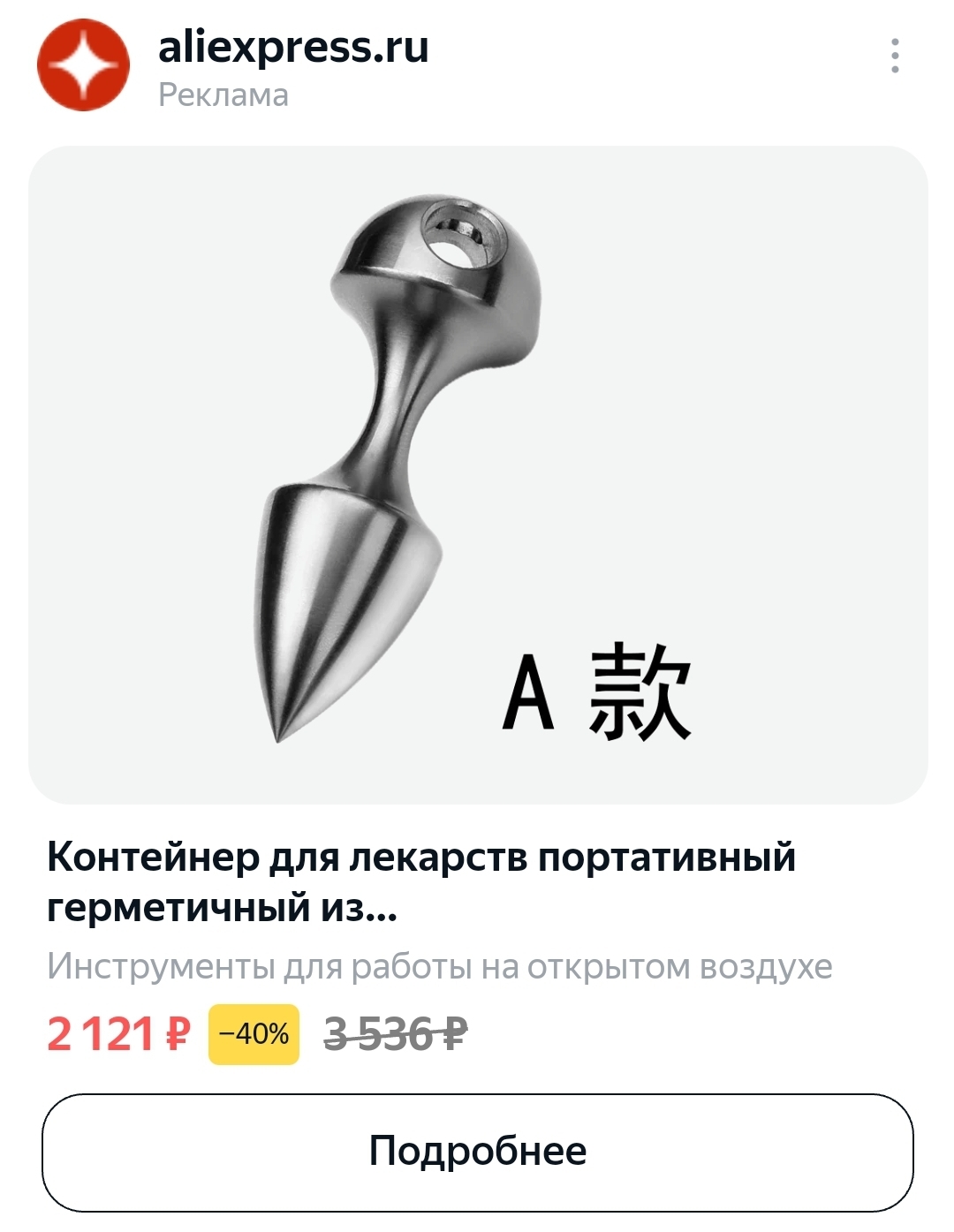 megasochi 2 года назад Баяны Контейнер? Для лекарств? Ну да, ну да Иногда реклама вызывает смешанные чувства. Вот такое проскочило через фильтры. Что скажете? Первый раз сомневаюсь какие теги ставить. Если что поправьте. Реклама Юмор AliExpress Ещё 0