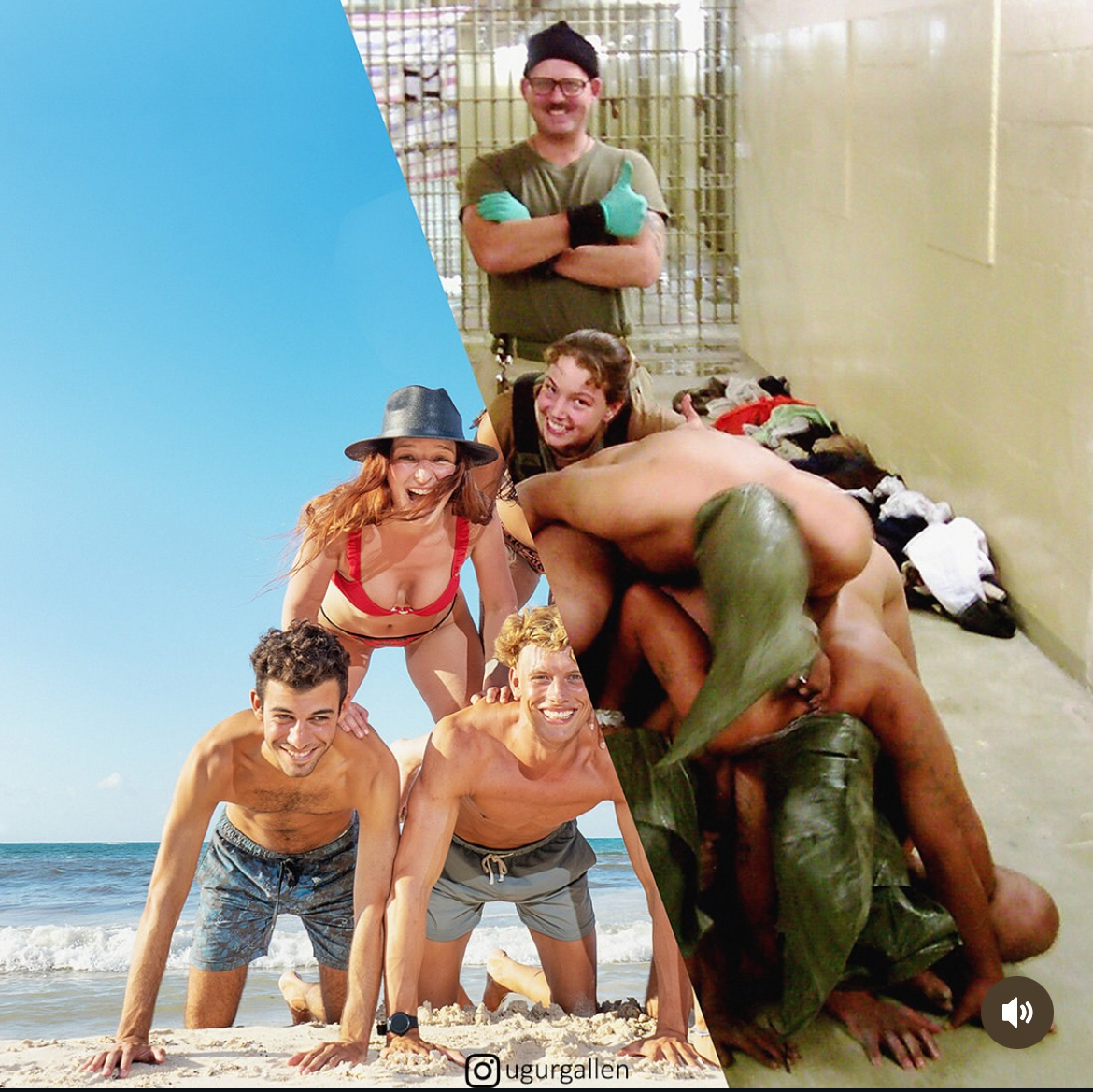 Справа фото где два тюремщика фоткаются на фоне голых заключенных, которые подвергались пыткам: https://ru.m.wikipedia.org/wiki/Пытки_заключённых_в_тюрьме_А...