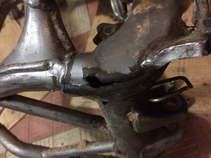 Осмотрите подрамник. В идеале он не должен быть перекошен или треснут. Если заварен – ничего страшного. Эта часть страдает, когда мотоцикл запускают в космос, без райдера, естественно.