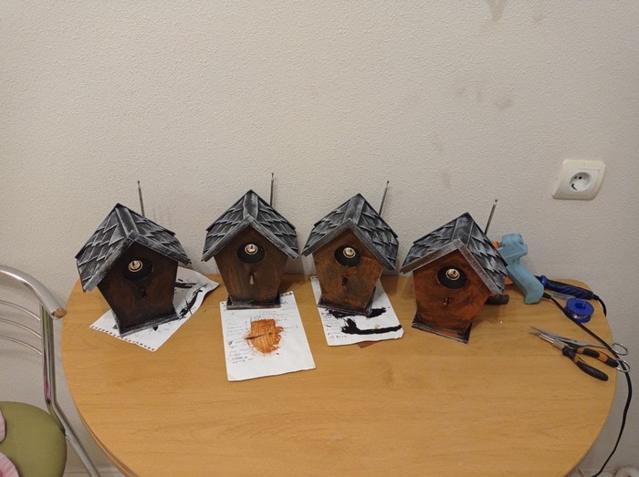 Я купил радиопередатчик который вещал на FM диапазон, и несколько радиоприемников, которые спокойно могут работать от аккумуляторов несколько суток. Их я переделал под скворешники, чтобы в глаза не бросались. И переписал софт. Для решения проблемы дистанционного управления я купил Raspberry Pi и подключил к нему свисток с интернетом.