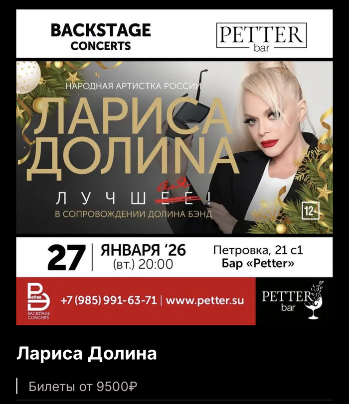 1202 Gleb.Buzalo Концерт Долиной в баре Petter1 2 дня назад Я никого не агитирую ставить одну звезду клубу. Не самая плохая пивнушка. Жаль, что зашкварились. Из новостей: Лариса Долина перенесла передачу квартиры на 20 января в связи с отдыхом в Абу-Даби Лариса Долина Квартирный вопрос Концерт 124 95 26 6 4 2 1 1 Ещё 3