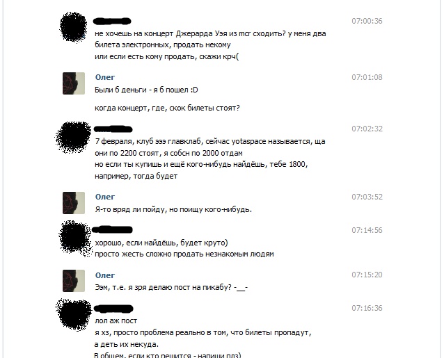 И так случилось, что у моей знакомой есть два билета, которые она не сможет использовать, и готова обменять на денежку.