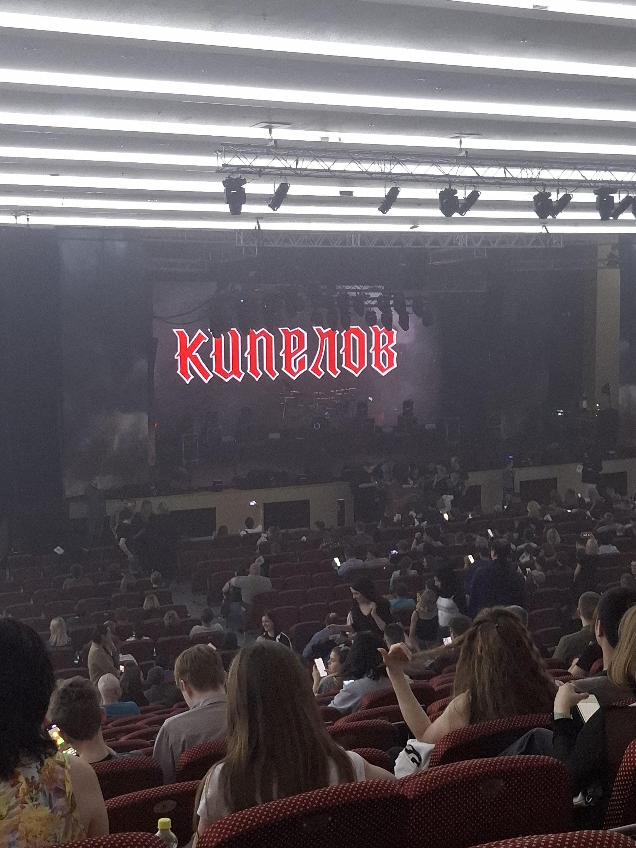 Все расселись и началось ожидание, спонтанно кто-то начинал хлопать, кто-то поддерживал, кто-то начинал скандировать "КИ-ПЕ-ЛОВ", все затихало, кто-то опоздавший шел в свою середину ряда, весь ряд судорожно вставал, опять выкрики, хлопки. А потом...