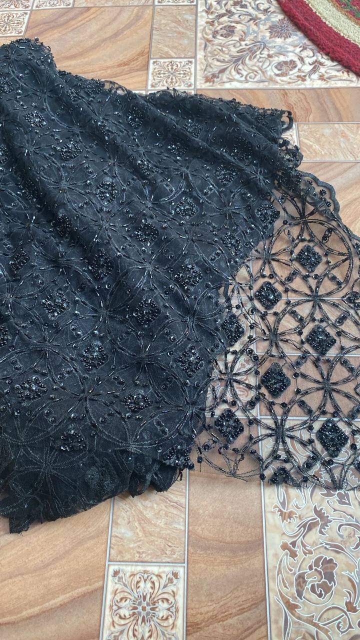 Сложно было работать с тканью, расшитой бисером, мелкие бусинки и пайетки пришлось в самом конце нашивать там, где осыпались. Ткань на юбку оказалась тяжелой и скрадывала объём в районе женских выпуклостей, в результате из жесткого фатина сшила турнюр.