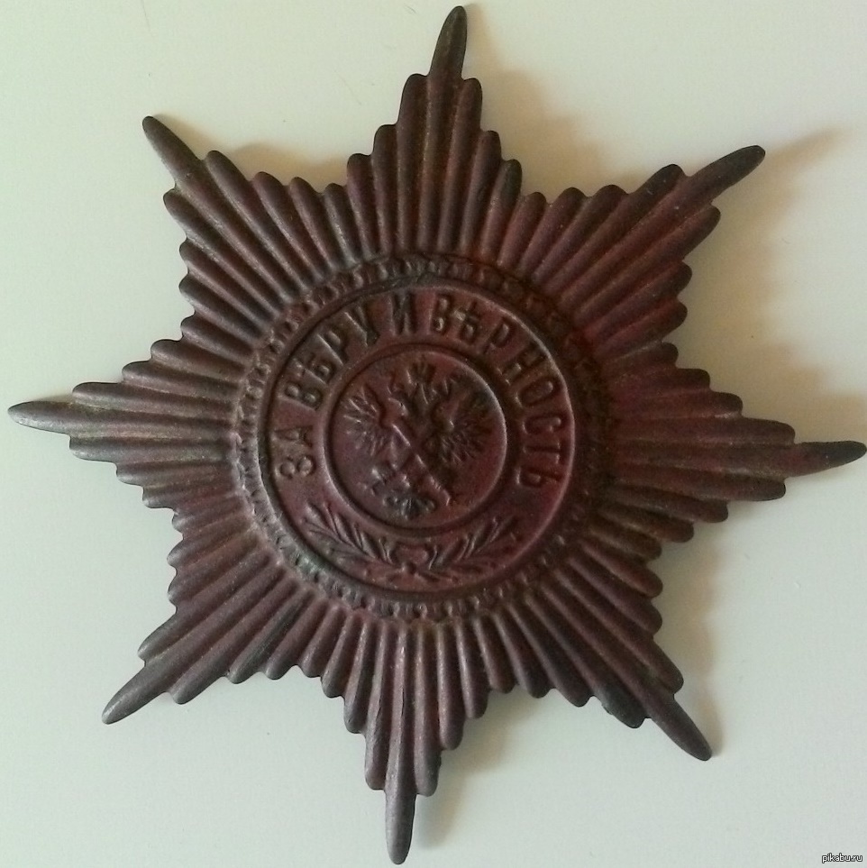 1433 And333 Копал червей на даче для рыбалки, а выкопал звезду) 10 лет назад Сначала подумал,что хлам какой то,когда почистил оказалась- гвардейская кокарда 18-го века. [моё] Звезда За веру и верность