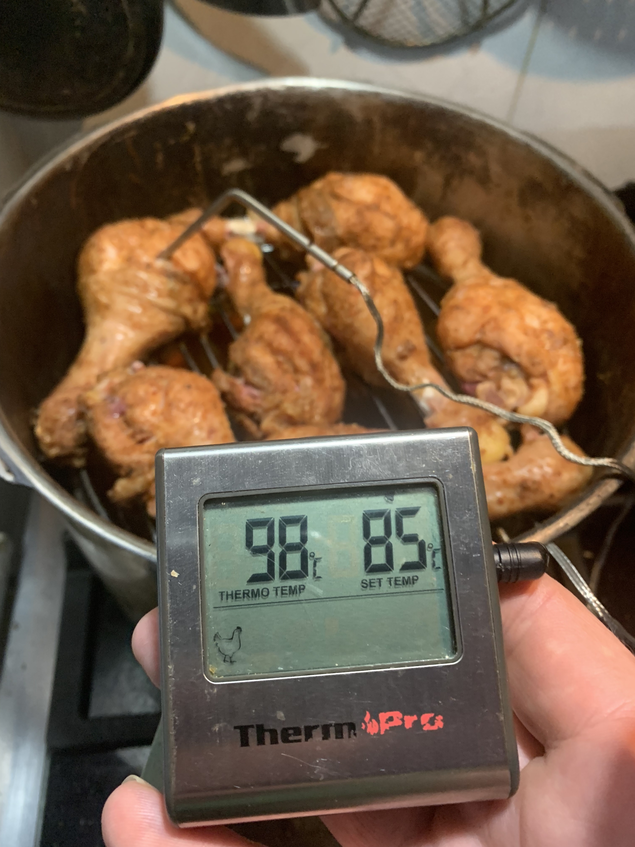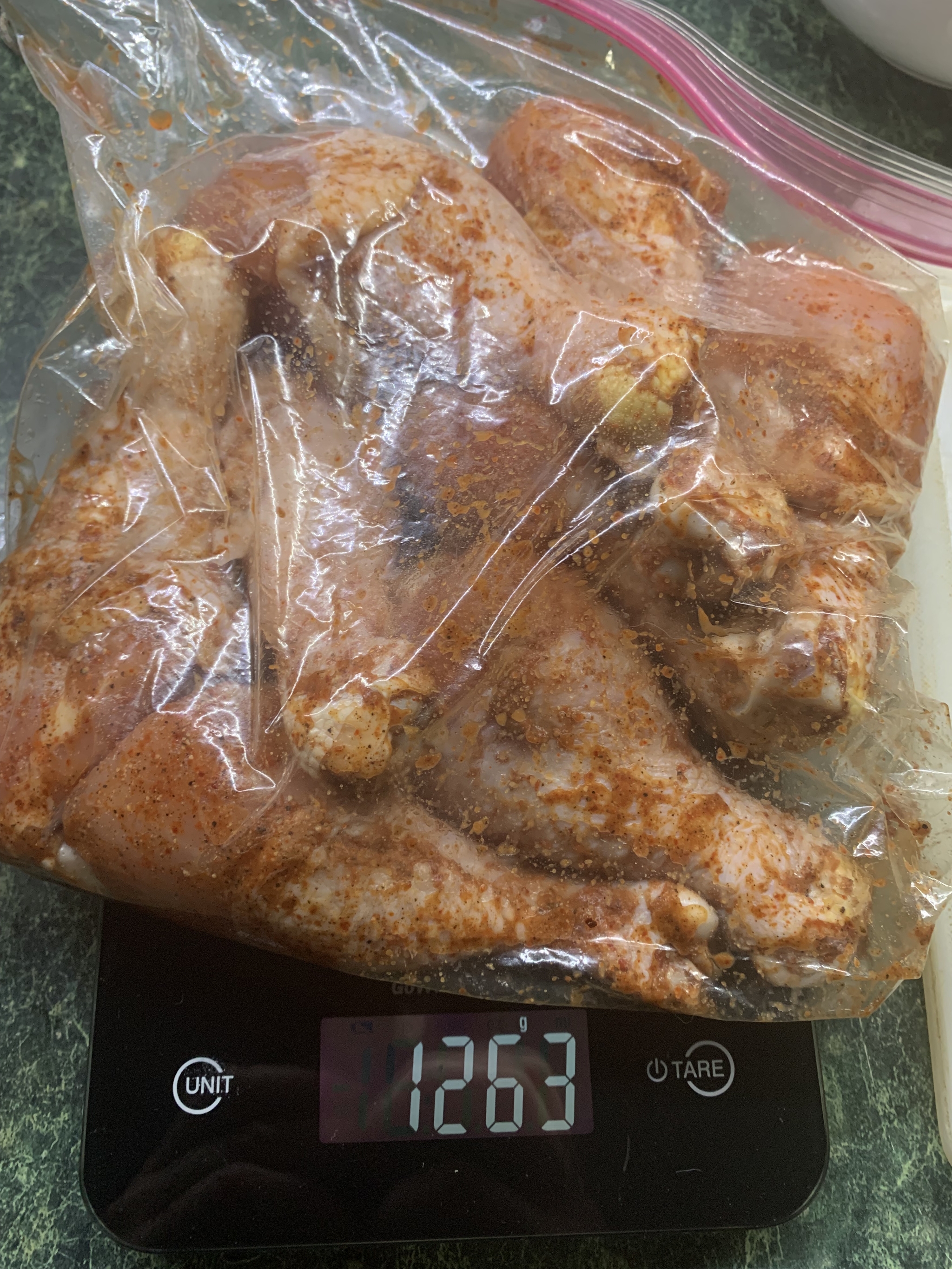 Далее всратую решётку для продукта и собственно продукт. Сегодня это куриные ножки которые я замариновал на ночь. Паприка, черный перец, сухой чеснок и соль.