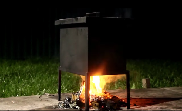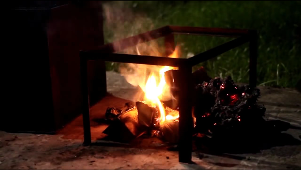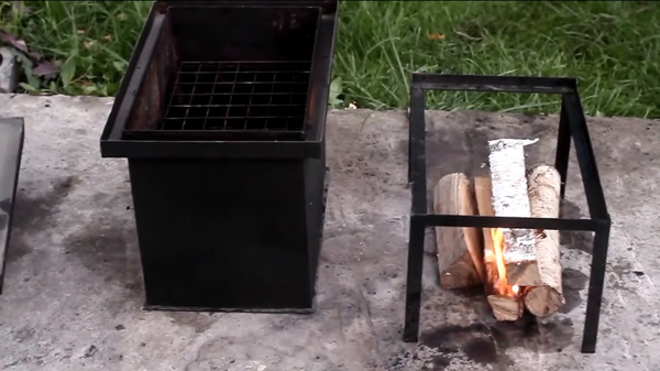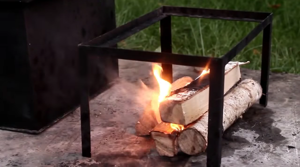 Готовим коптильню. Много дров не надо, мы ж не мясо коптить собираемся. Пару тройку поленьев - достаточно.
