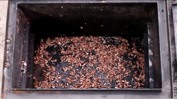 А пока выкладываем щепу на дно коптильни. Вообще по всем мануалам надо ее закрывать фольгой (или специальной крышкой если есть). Но так как жир у нас капать не будет (да какой там жир с этих растений!!), делайте как хотите.