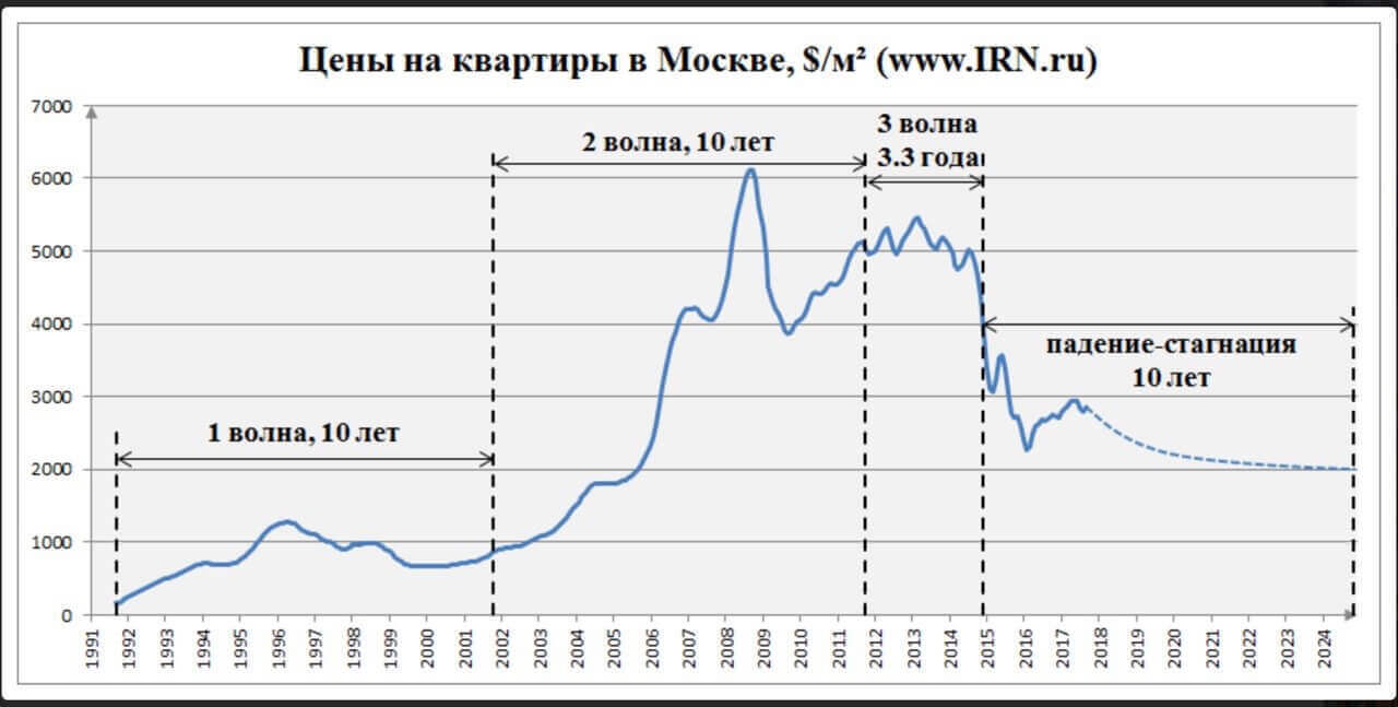 Ок. А в чем она росла? В рублях? Ведь в долларах недвижка в России только падает же с 2008-го. Ладно. А сейчас тоже недвижимость растёт? Первичка или вторичка? И никто не покупает? Или растут только топовые локации в пределах Садового или 3-го транспортного?