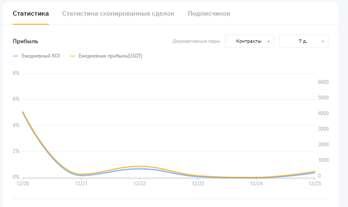 Параноики, не сочтите за рекламу трейдера. Это топ трейдер на Байбите, у него 2000 подписчиков из 2000 возможных, и проще увидеть динозавра на улице, чем попасть к нему. Так что страница будет рассматриваться именно для примера.