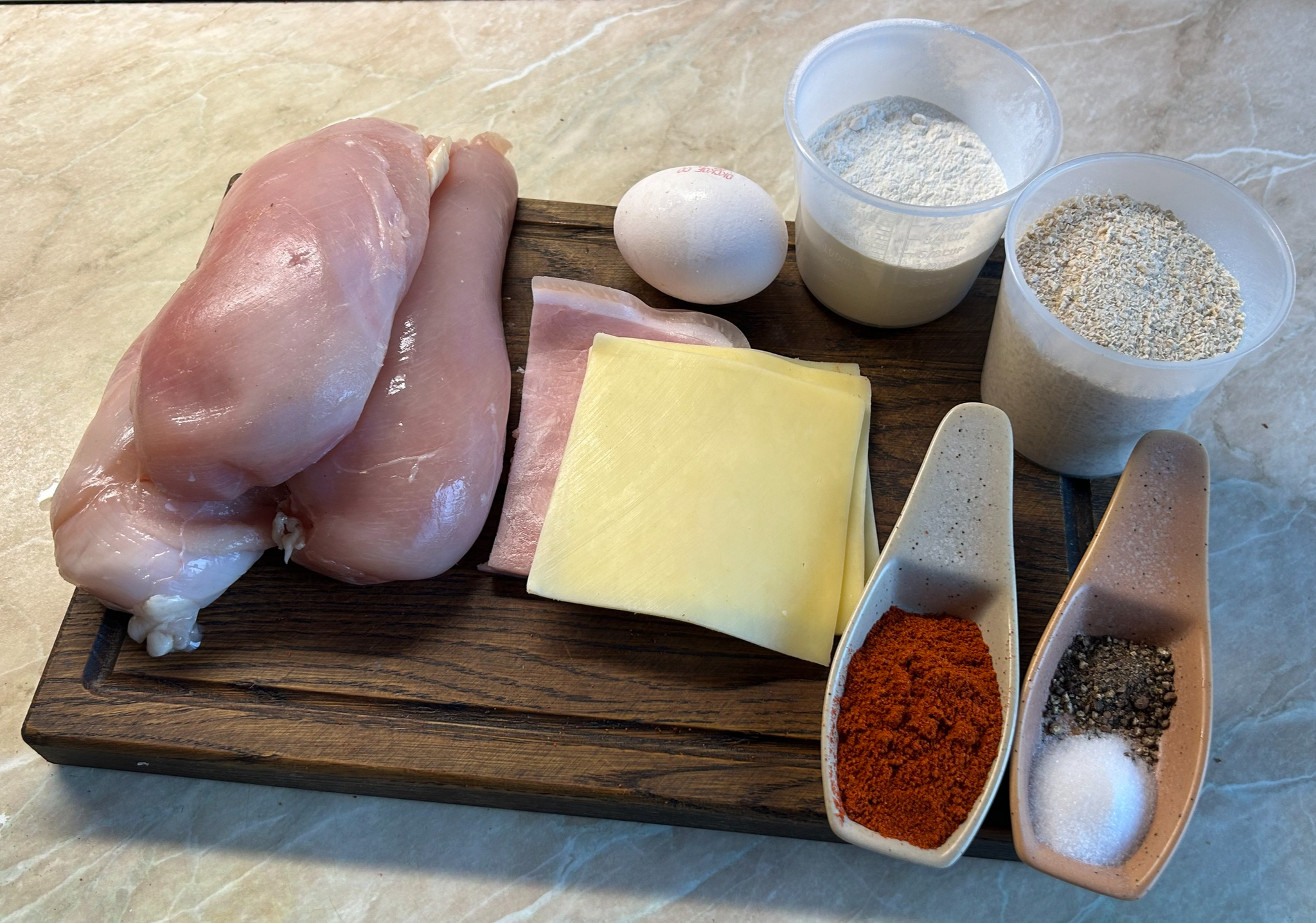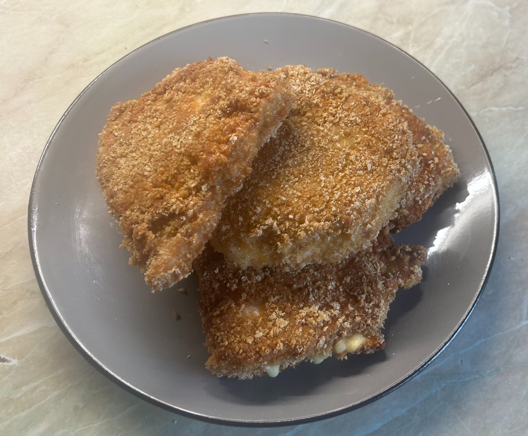 Растительное масло: количество зависит от ваше сковородки, масло при жарке должно покрыть Кордон Блю где то на 1/3-1/2 от толщины.