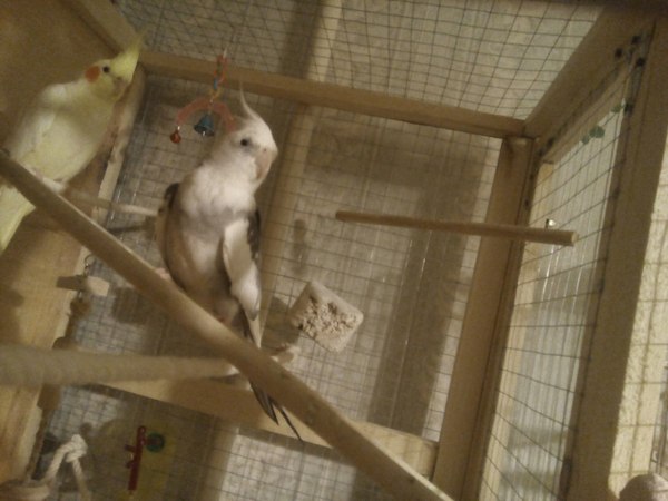 Переселив Перлушу к нему, я стал наблюдать. По началу все было хорошо: он ей пел, оказывал знаки внимания, пританцовывал. Но потом он увидел Стешу и все, сердце Юши было разбито. Перлуша была влюблена в него, это я понял по нескольким моментам: когда она его не видела, она очень сильно кричала и металась по клетке, словно зовя его, она зотела быть всегда рядом с ним. Но Жека выбрал в итоге Стешу(Лютино).