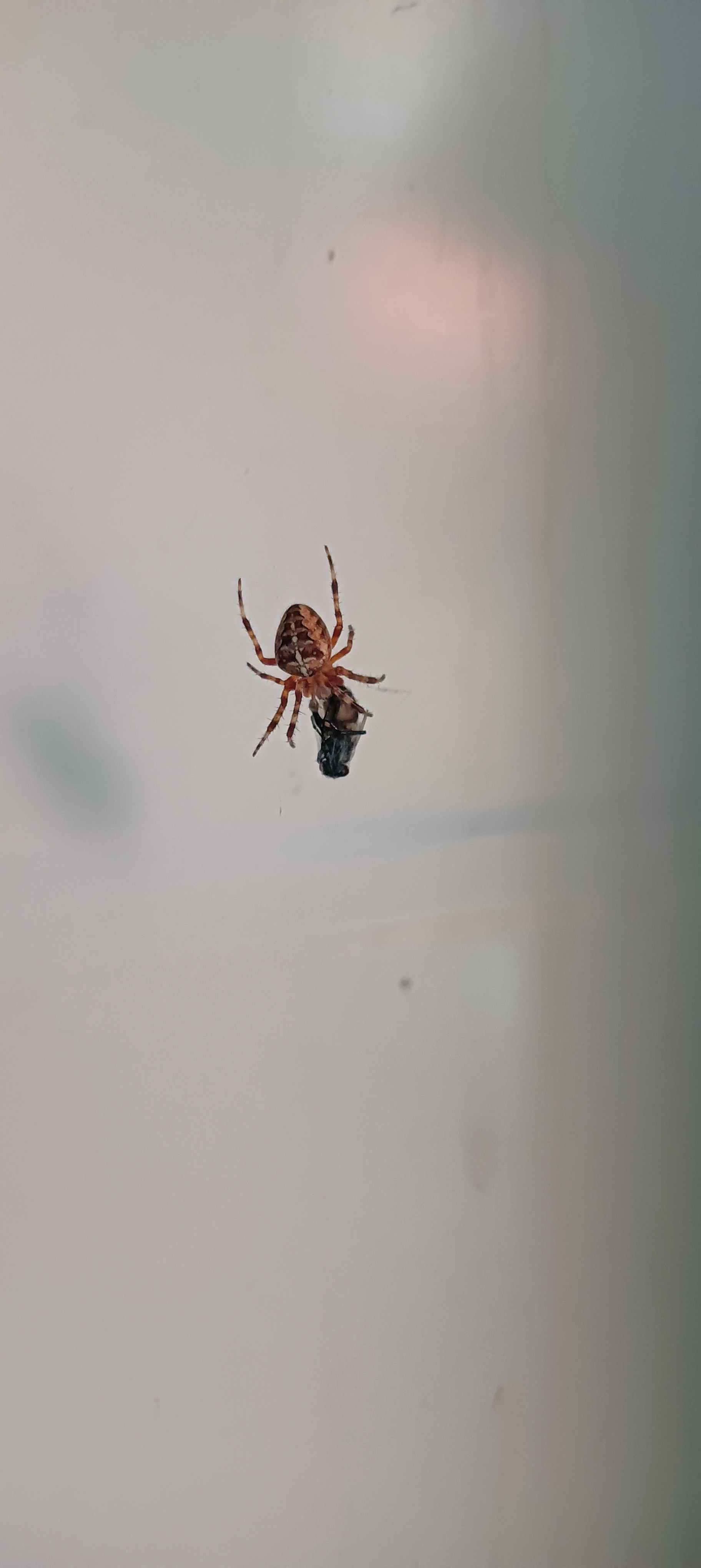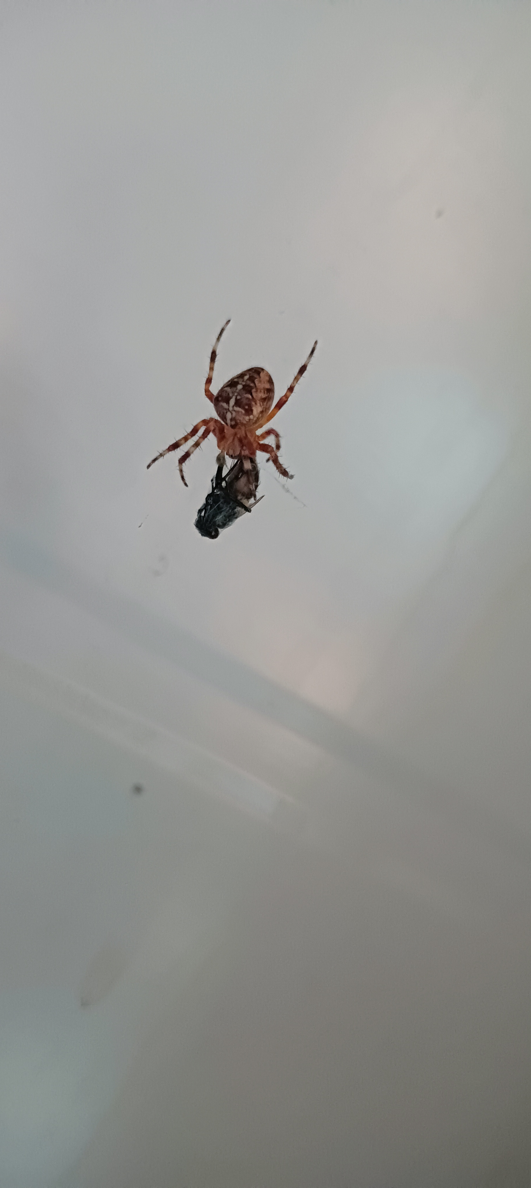Дело было с утра, на работе летало 3 назойливых мухи, так бесили меня пока не увидел в уголке паука. И вооот созрел план мести этим жужалкам, отловил пока что двух. Вот такой вот зверь- назвал Валера
