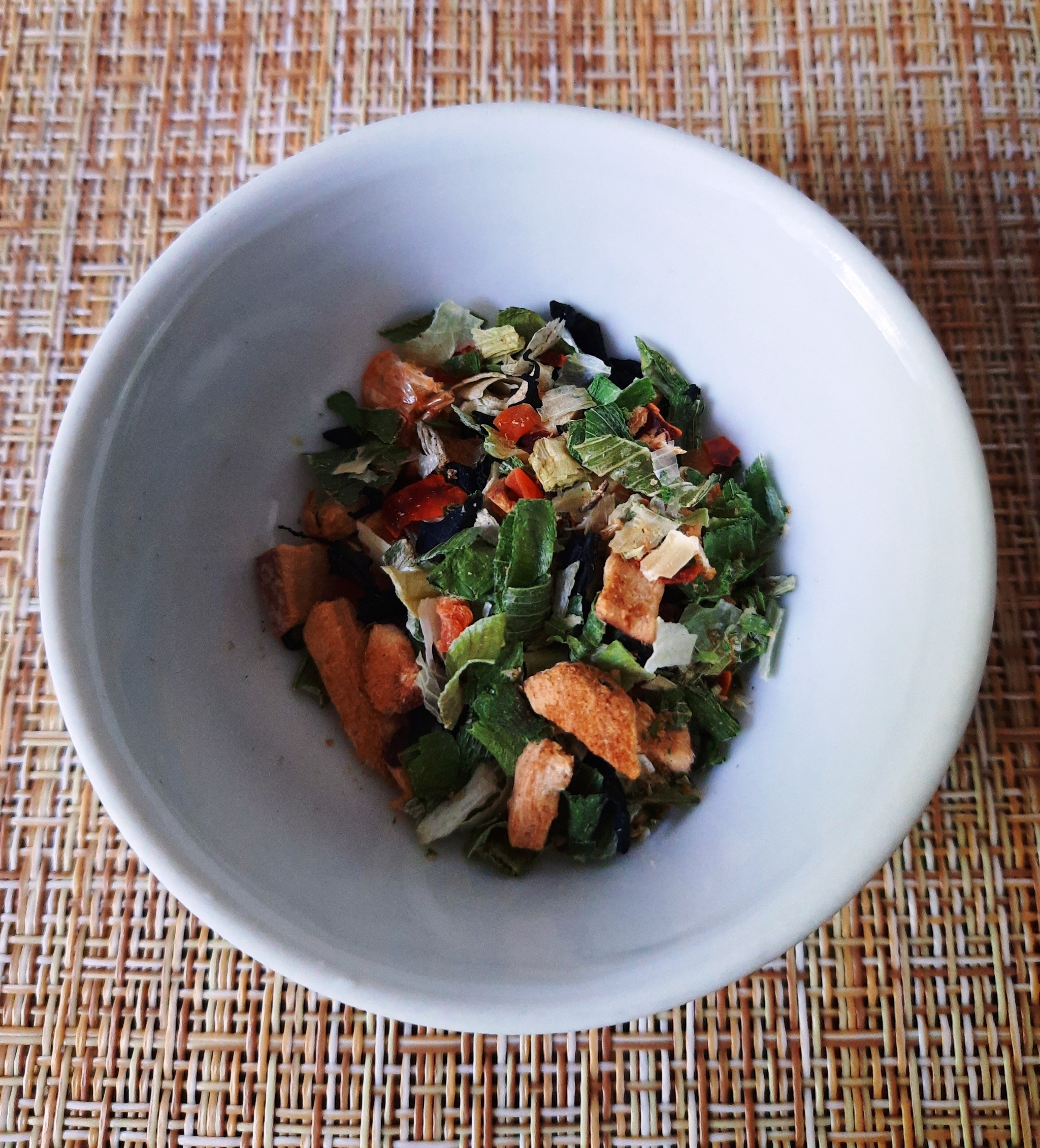 Сухая приправа более подробно. Сушеные лук, морковь, водоросли, красный перец и кальмар с креветкой.