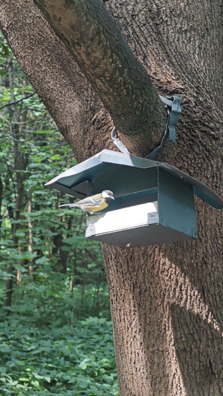 🐦 Кормили птичек семечками 🌻, но тут откуда ни возьмись, на чириканье птичек 🐤 в скворечник 🏠 ворвался главный его хозяин 🐦⬛ и, еле поместившись, стал быстро поедать запасы 🍂.