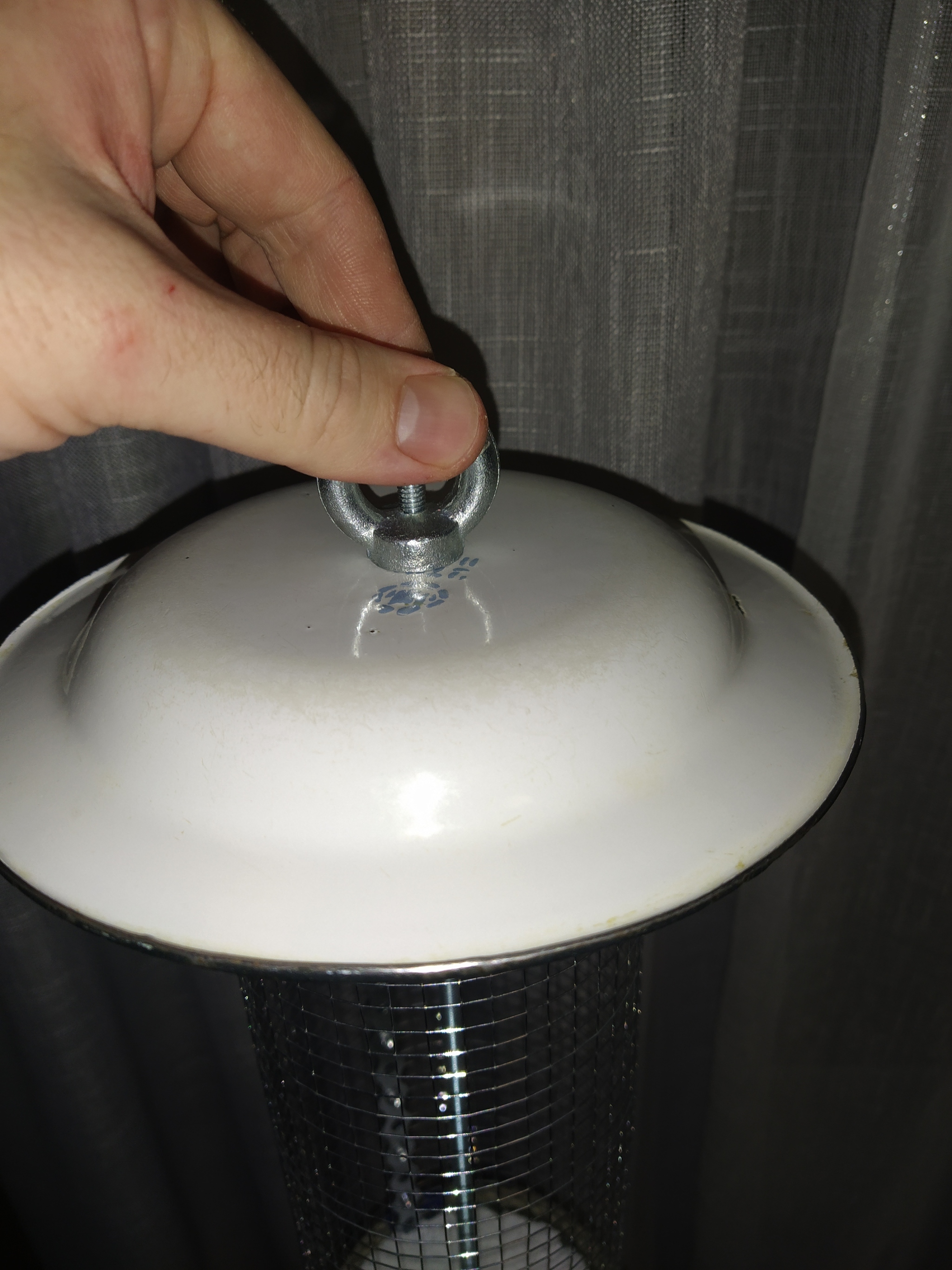 Сетка максимум с ячейкой 6×6 мм( у нас ее еще поискать надо было). Если больше, то высыпаться будут. Голуби не умеют на такую залазить это точно. Насчет галок не знаю) . Наберите в ютубе Василий Вишневский сетчатая кормушка- он очень хорошо рассказавает о кормушках и птицах. Делал сам, но в точности как у Вишневского у меня не получилось:) А так из запчастей : сетка, заглушка канализационная 110, шпилька, советская металлическая тарелка, рым-гайка, воронка ( моя плотно села в конус из сетки), шайбы и гайки , перфорированная лента и заклёпки ,ну и веревка( просто чтоб была приклеил). Также я использовал термоклей- зафиксировать сетку в заглушке и воронку к сетке. Не знаю нужно ли оно, но как это без термоклея)
