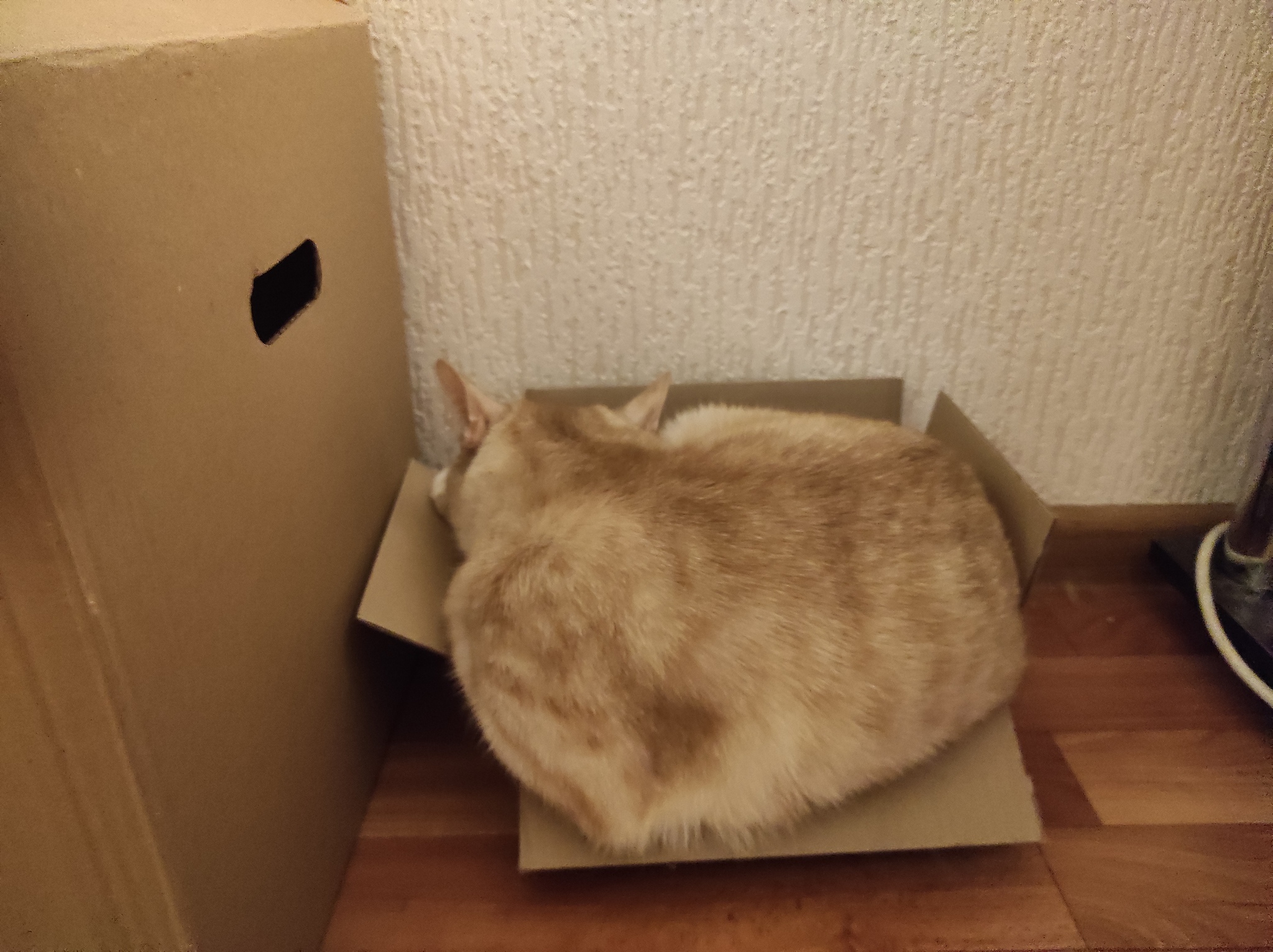 Был у котика дом, картонный, хороший, большой. Но тут появилась коробочка