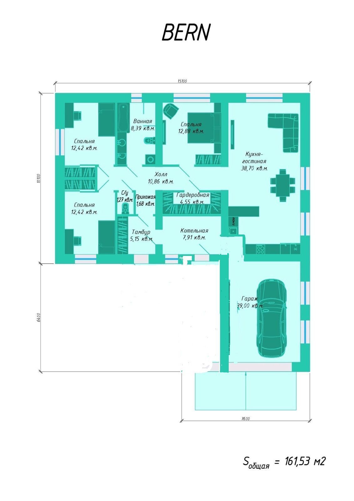 II) Стены возводим на монолитной плите, площадью 150 мм.