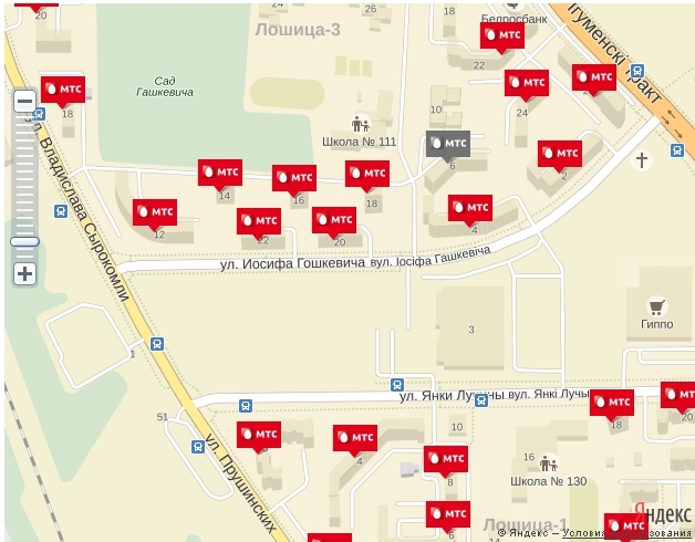 Решил я такой сменить свой медленный ADSL на что-нибудь побыстрее. Пошарился, нашел наиболее подходящий мне вариант. На сайте было написано, что в моём районе подключение возможно, но я на всякий случай глянул карту покрытия. Красная отметка - подключение возможно, серая - невозможно.