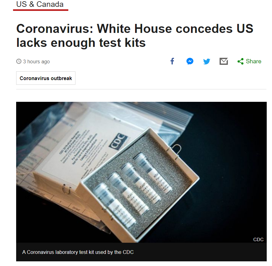 Белый дом признал, что страна не имеет достаточного количества тестов для определения коронавируса, что и привело к росту заболеваний на обоих побережьях США. Вице-президент Майк Пенс, которого Трамп назначил верховным главнокомандующим в войне с коронавирусом, заявил, что поставленная задача по поставке миллиона тестов на этой неделе невыполнима.