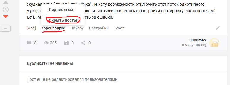 Открываю Пикабу. Понеслось. Коронавирус тут, карантин там, маски, гречка, самоизоляция... Задолбало. Телевизор, радио и тут. В настройках нету функции отключить то, что тебе неинтересно. Ну не люблю я котиков. Не интересен мне дефицит масок от орви. Не цепляет скудная пикабушная "клубничка" . И нету возможности отключить этот поток однотипного мусора (лично для меня). Неужели так тяжело влепить в настройки сортировку еще и по тегам? ЪУЪ! Можете минусить и пинать за ошибки.