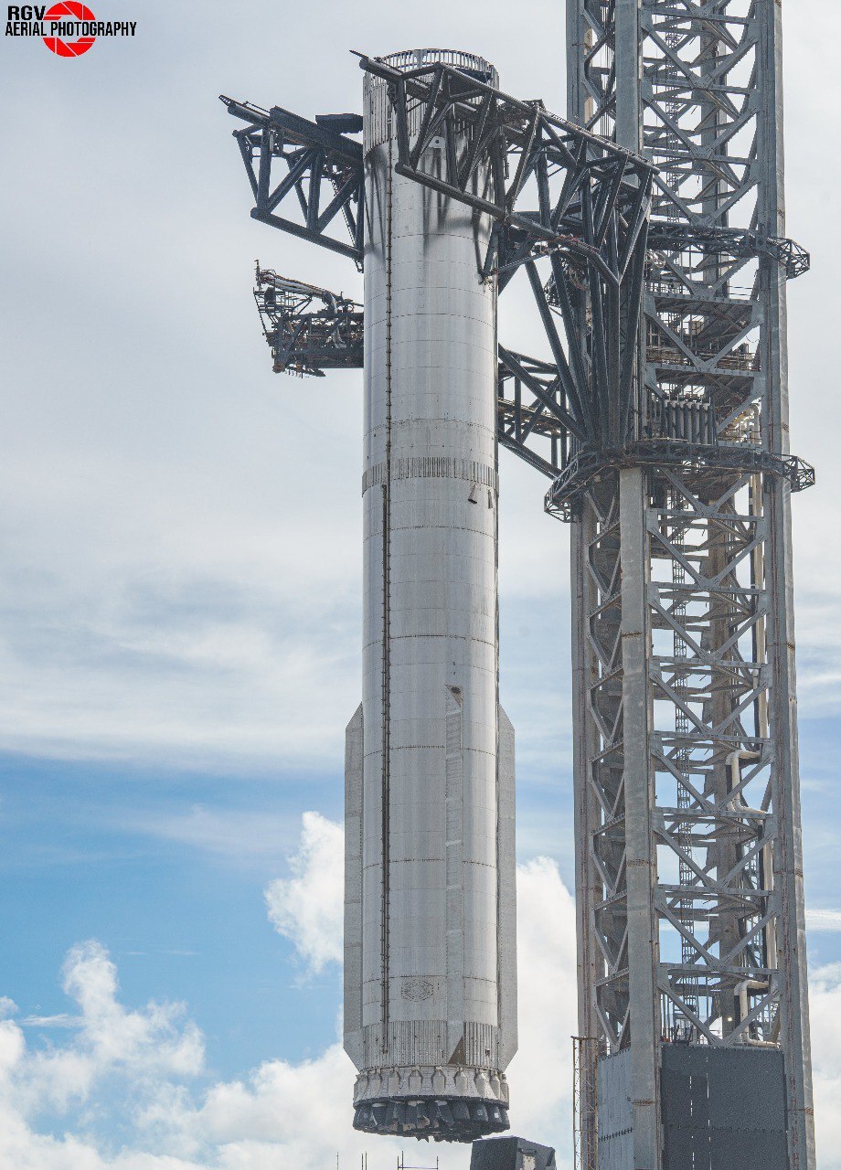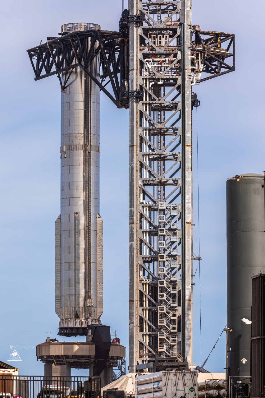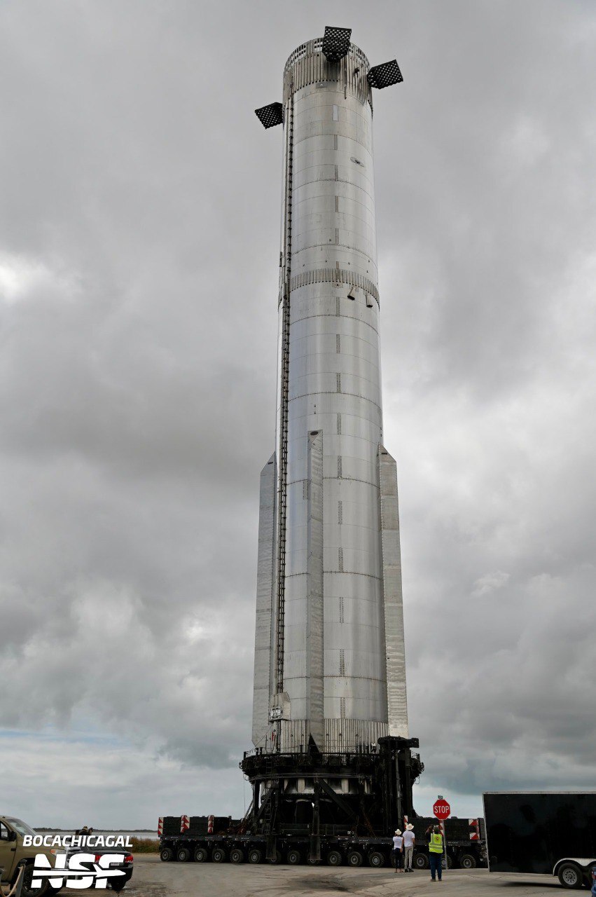 Прототип Super Heavy B9, вместе с отсеком для горячего разделения, был установлен на стартовый стол для проведения дополнительных предполётных тестов.