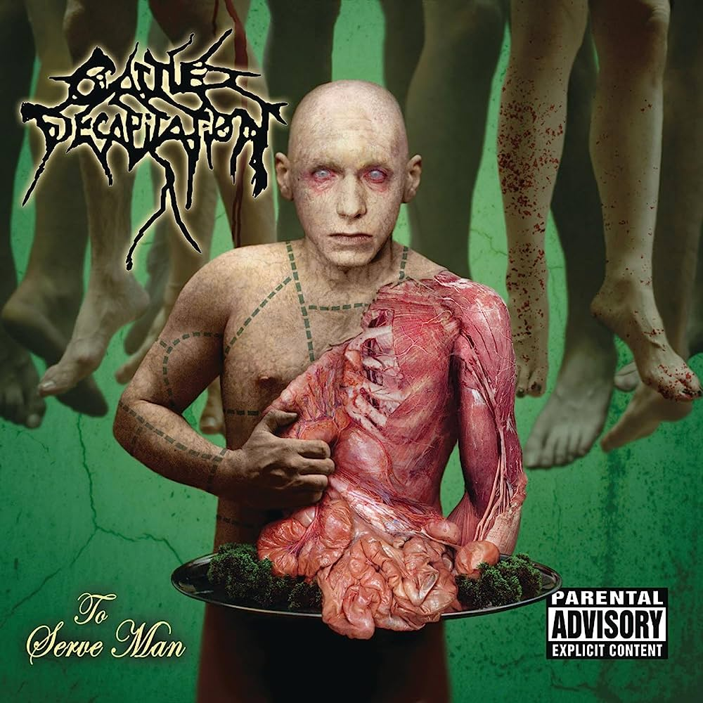 А еще у группы есть аж две обложки, которые забраковали многие музыкальные магазины из-за непотребного содержания: это To Serve Man (внизу) и Humanure (эту я вставлять не стал, так как могут повесить тег "жесть". Погуглите сами).