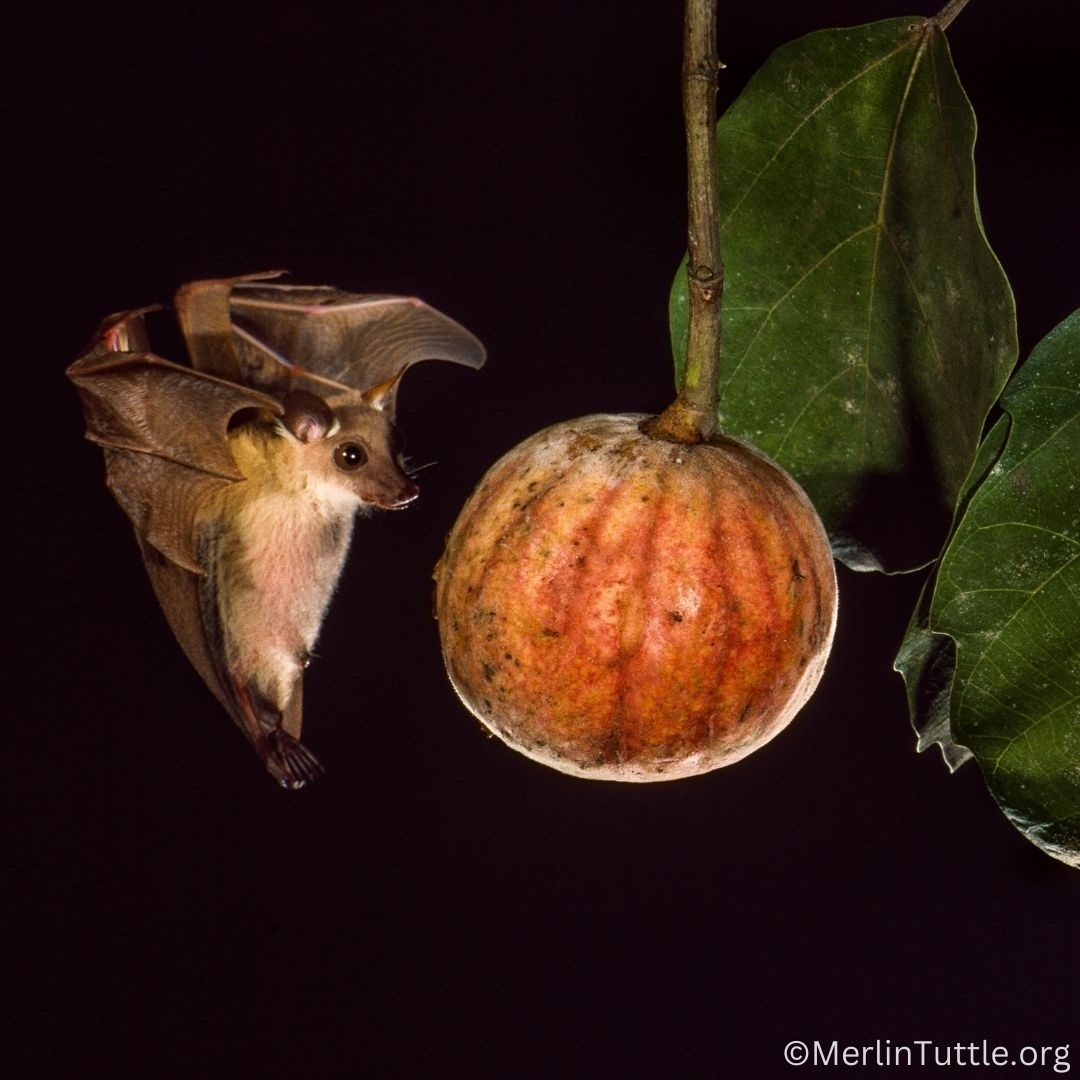 Во время кормления летучая мышь сжимает фрукт, слизывая выдавливаемый сок с поверхности.