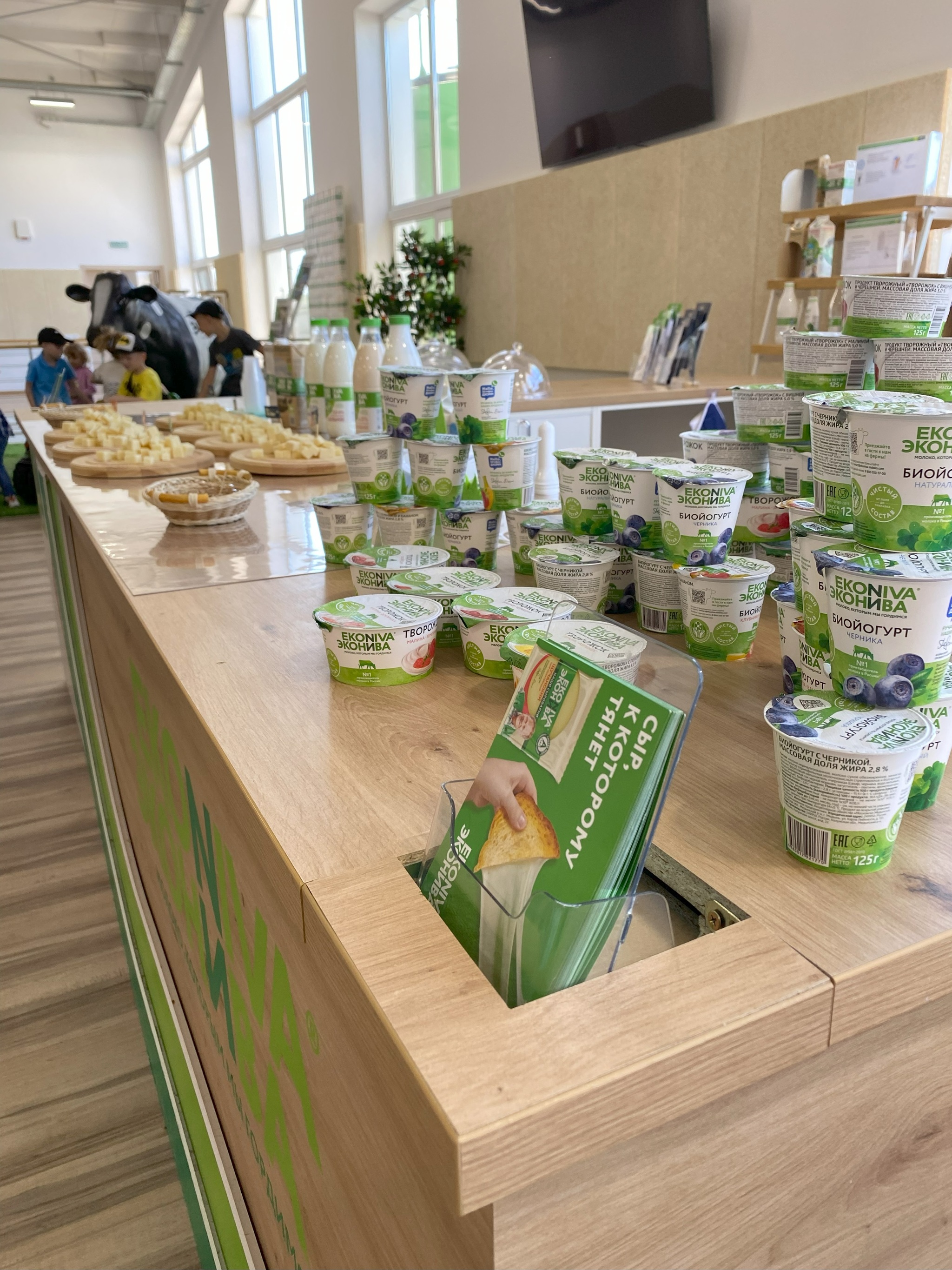 Мы продегустировали свежий йогурт, молоко и сыр, что-то понравилось, что-то нет, но так или иначе после экскурсии мы поехали в фирменный магазин за продукцией.