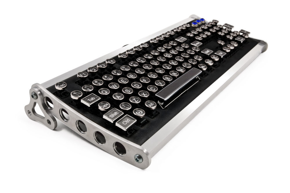 Итак, вот одна из моих последних работ — корпус для компьютера, стилизованный под ламповую аппаратуру. Это фантазия на тему того, как могли бы выглядеть персональные компьютеры, если бы они существовали в 50-х.