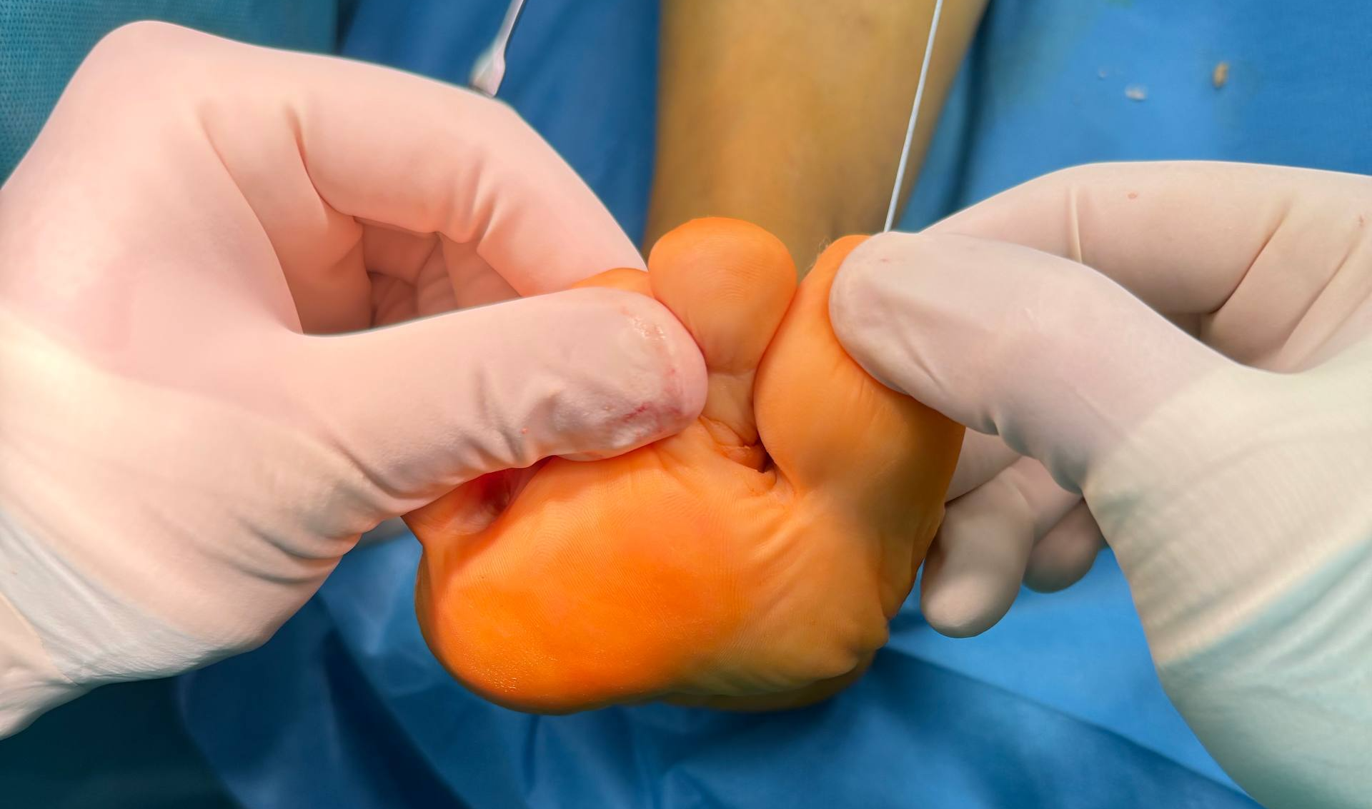 Как это понять интраоперационно? Да довольно простым путём. Мы выводим смежные пальцы для того чтобы определить наиболее оптимальное положении. И ниже представлены два изображения на которых продемонстрировано различное положение пальцев.