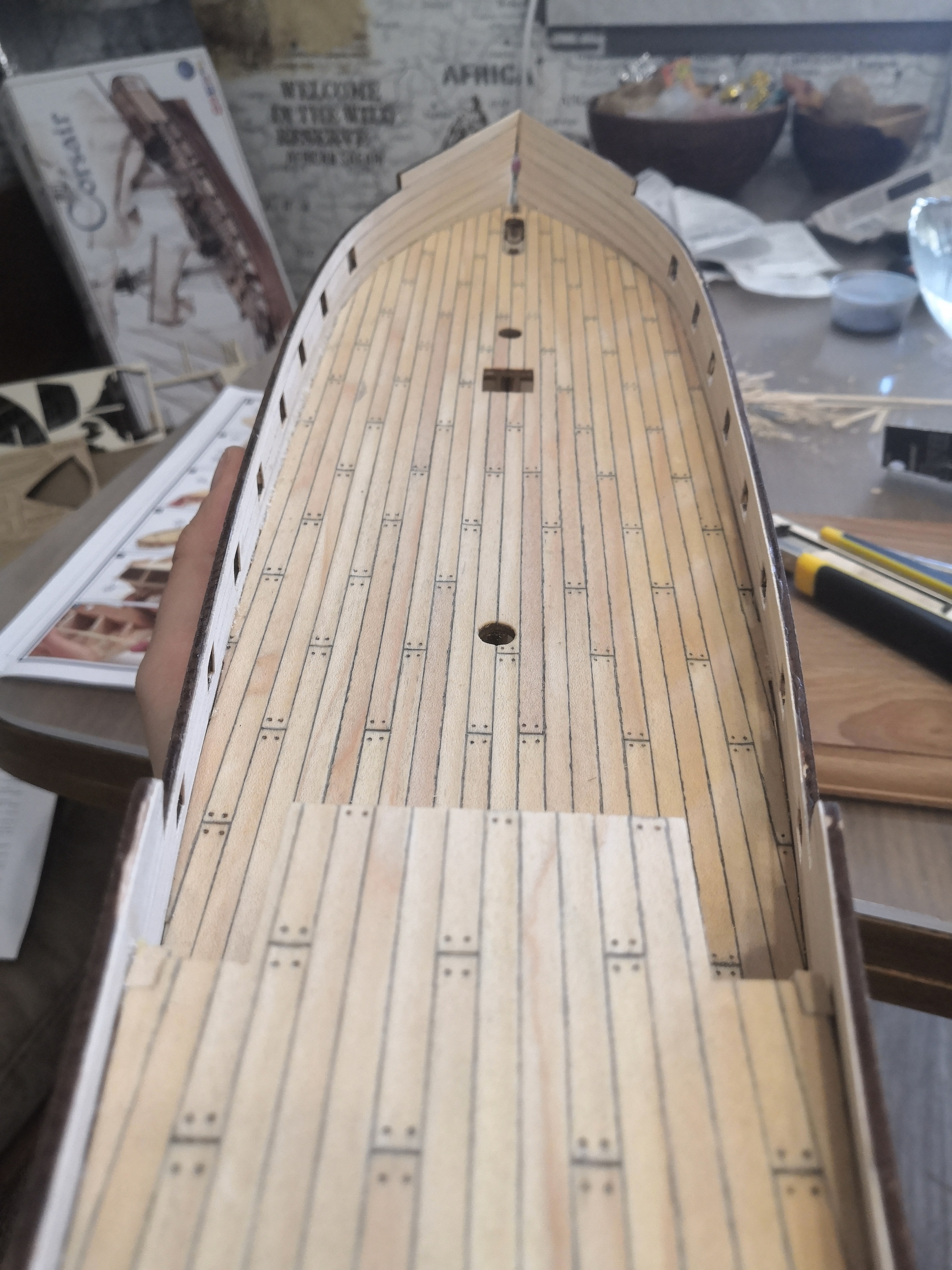 Впереди обшивка корпуса. Тут случился перерыв в работе около недели и запал немного угас. Появилось гнетущее чувство, что запорю черновую обшивку корпуса, так что решено было собрать шлюпку.